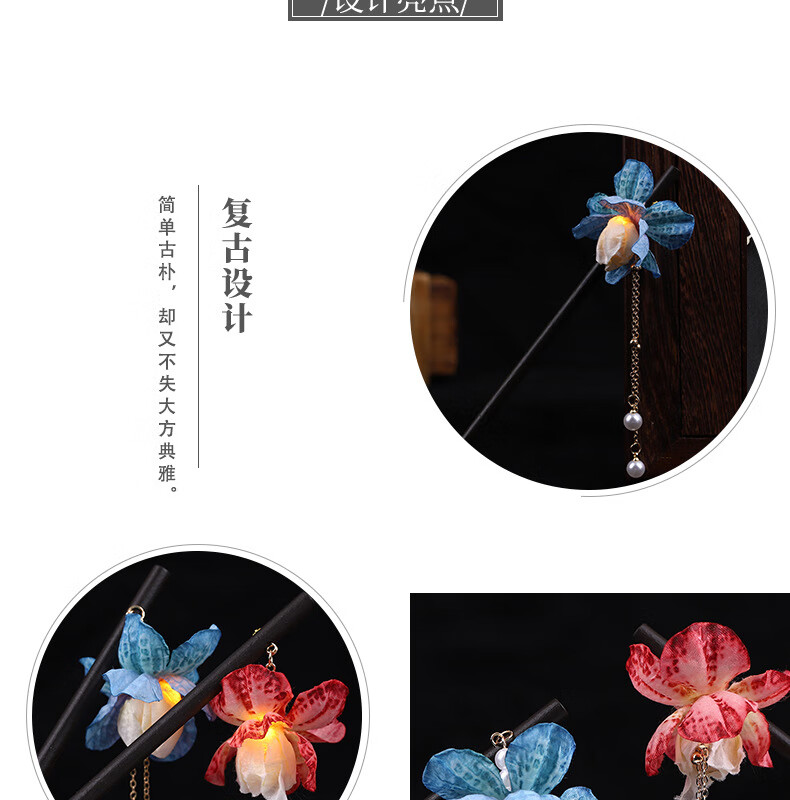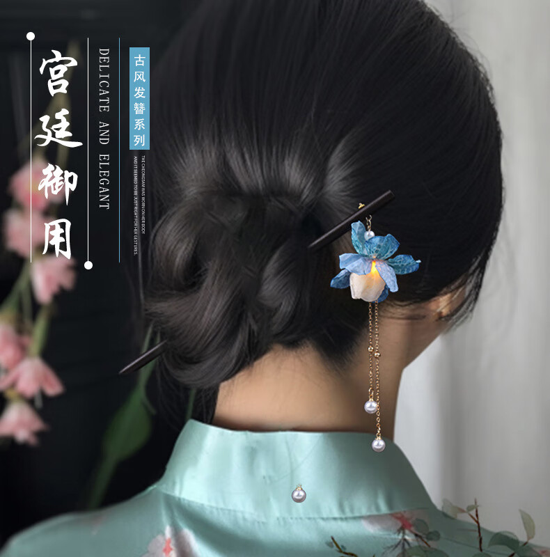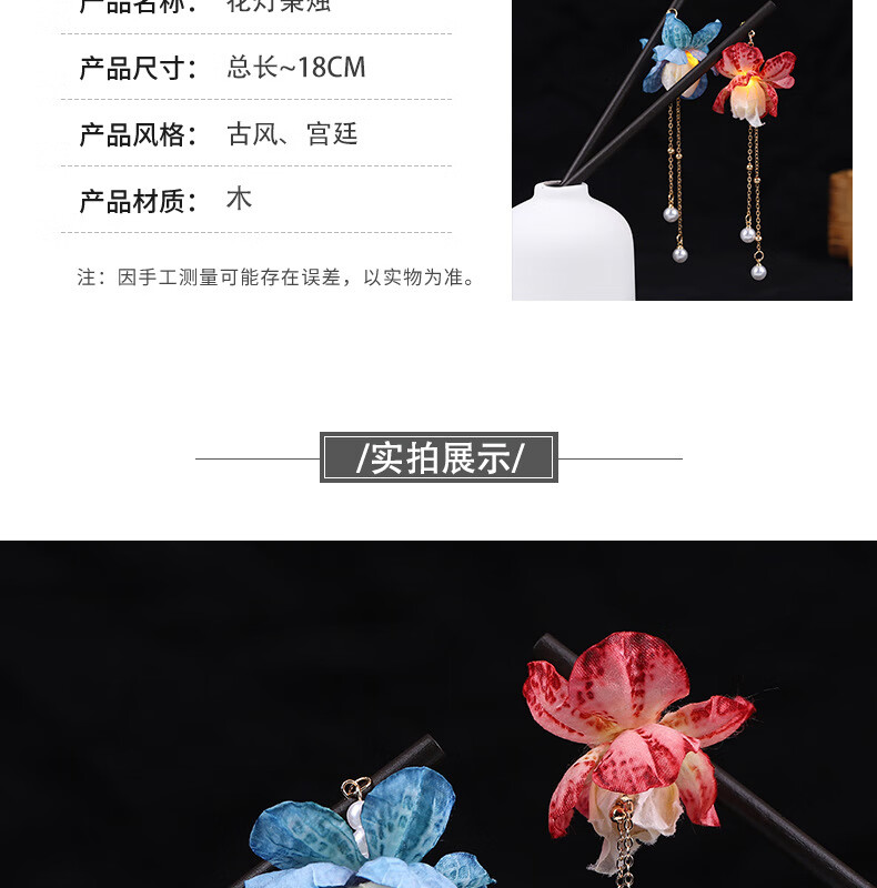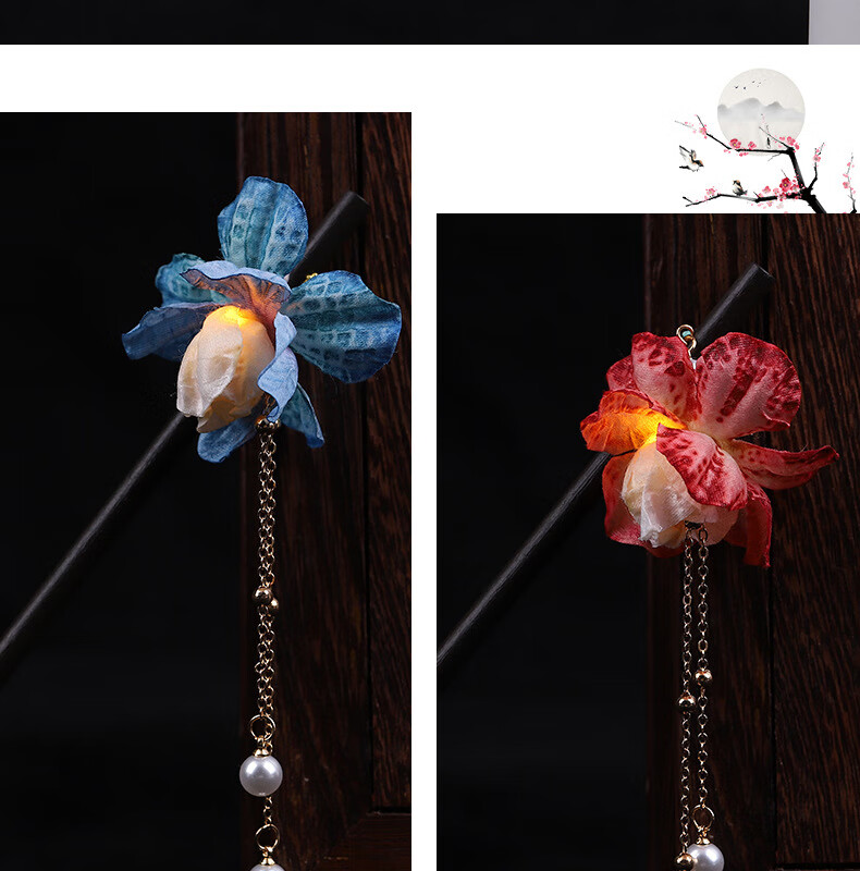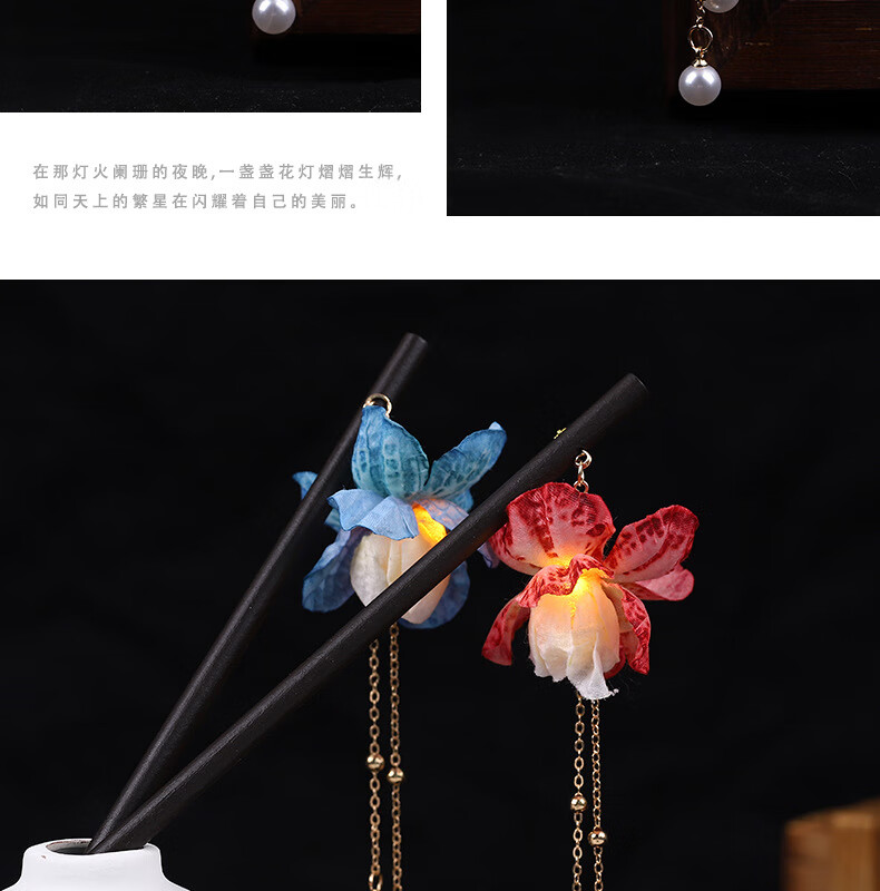 LEMIAO Ancient Style Tassel Hairpin Luminous Lantern Hairpin Silk Flower Wood Hairpin Palace Fairy Headdress Daily Versatile Hair Accessories Women Lantern Holding Candle - Blue