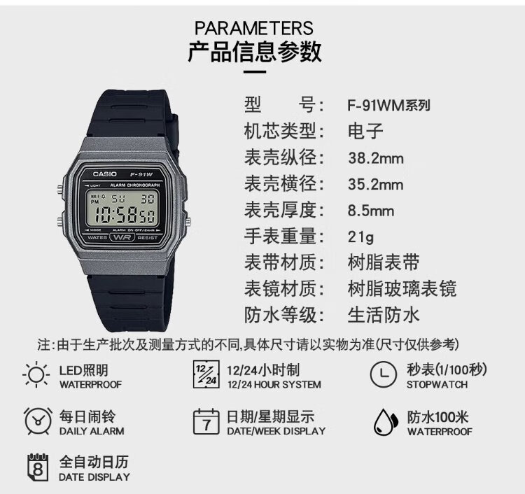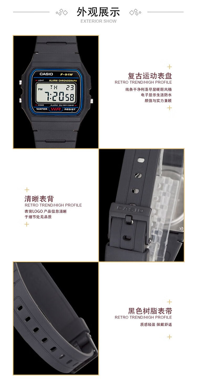 Casio (CASIO) small square simple retro waterproof electronic student watch men's and women's watch Valentine's Day gift F-91W-1