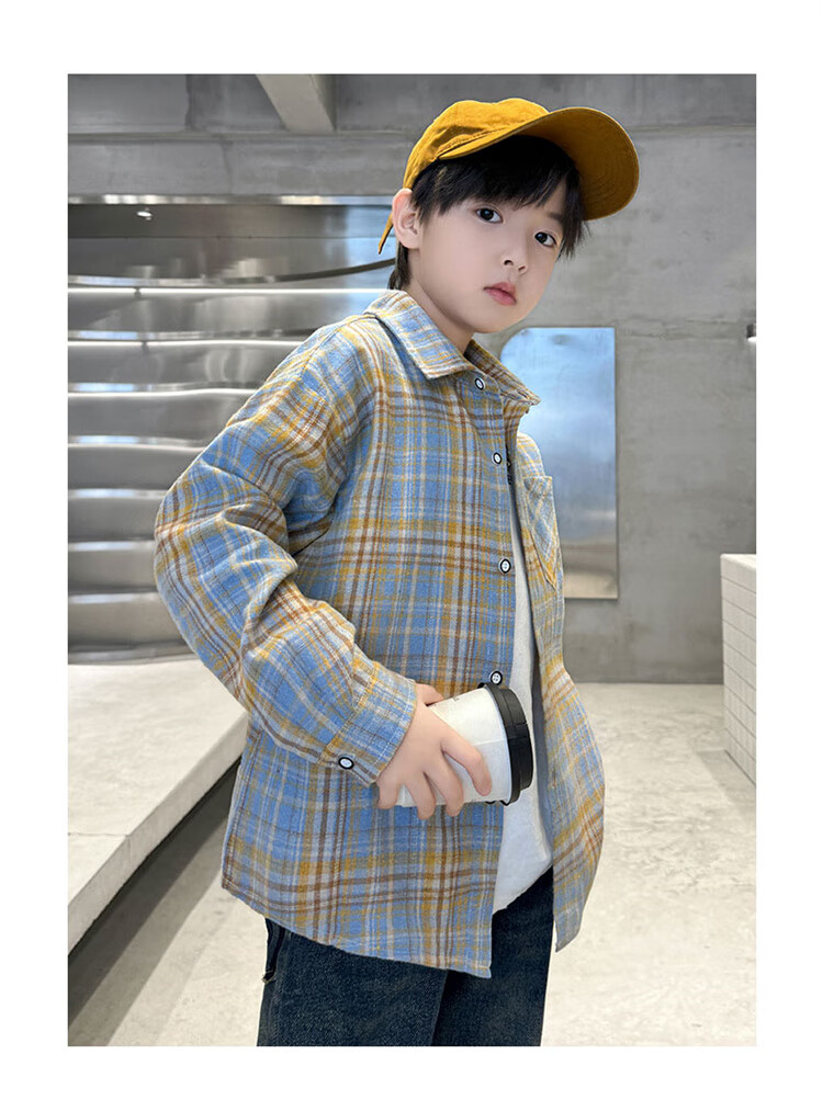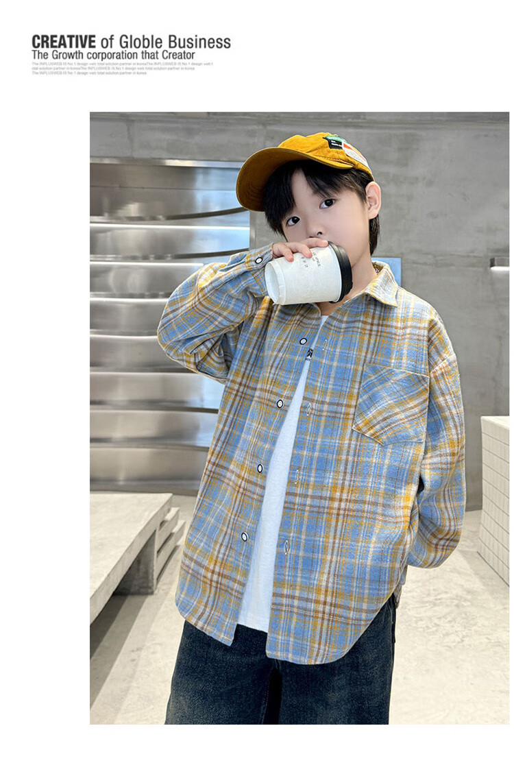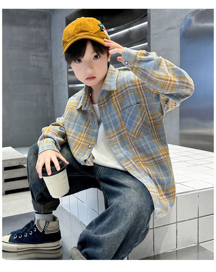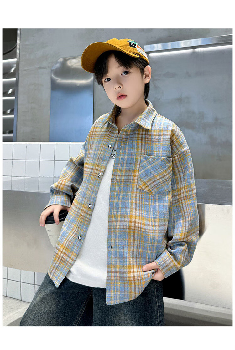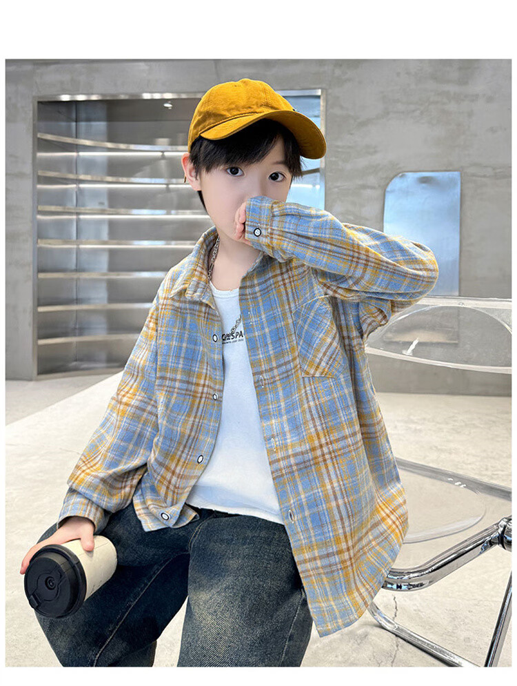 G.duck brand children's clothing boys' plaid shirts spring and autumn children's long-sleeved shirts boys' autumn clothes medium and large children's autumn clothes yellow 140