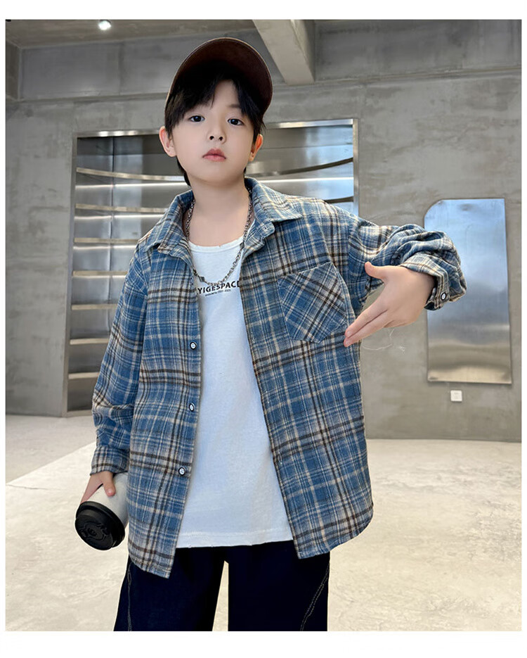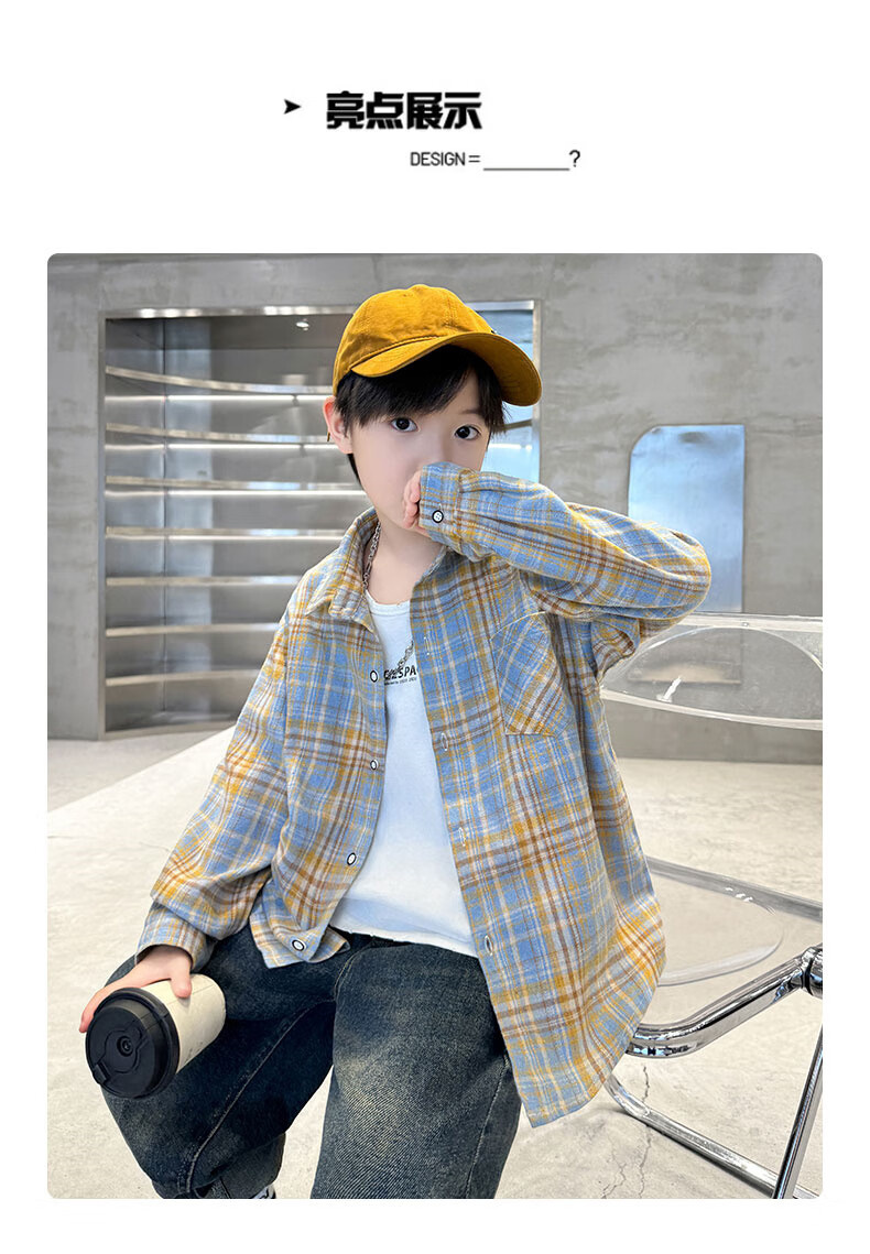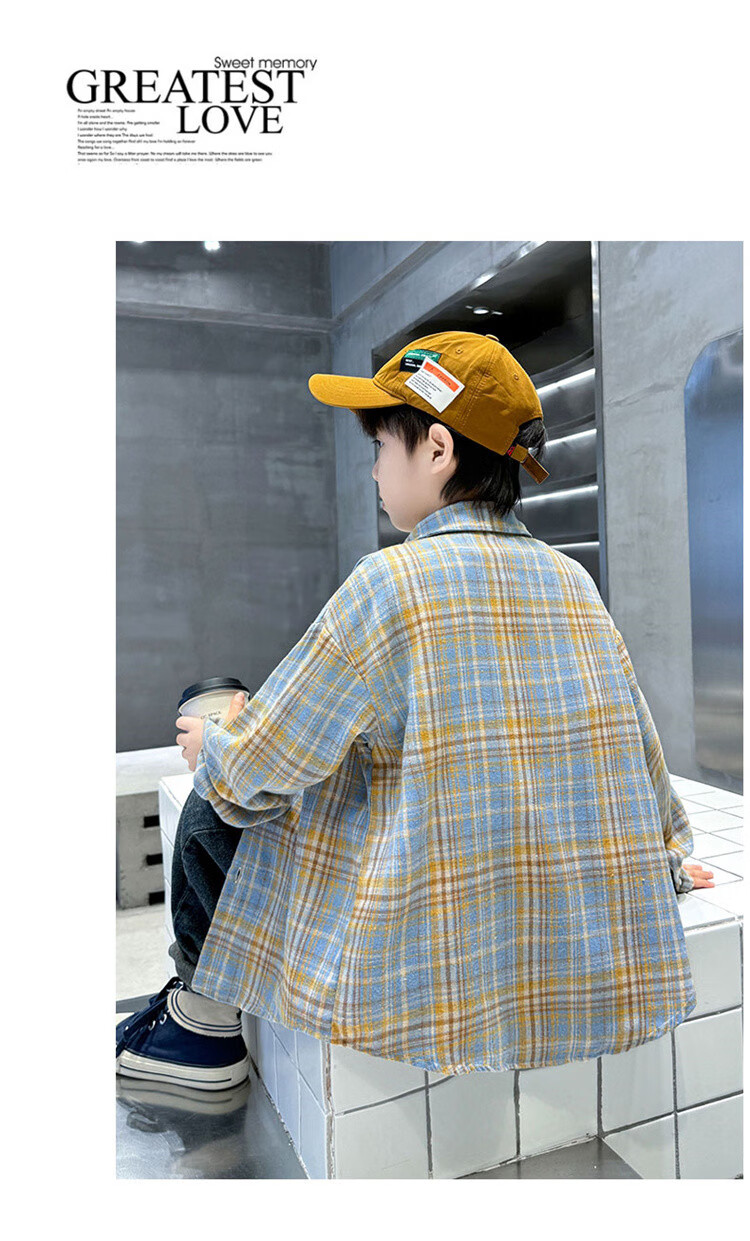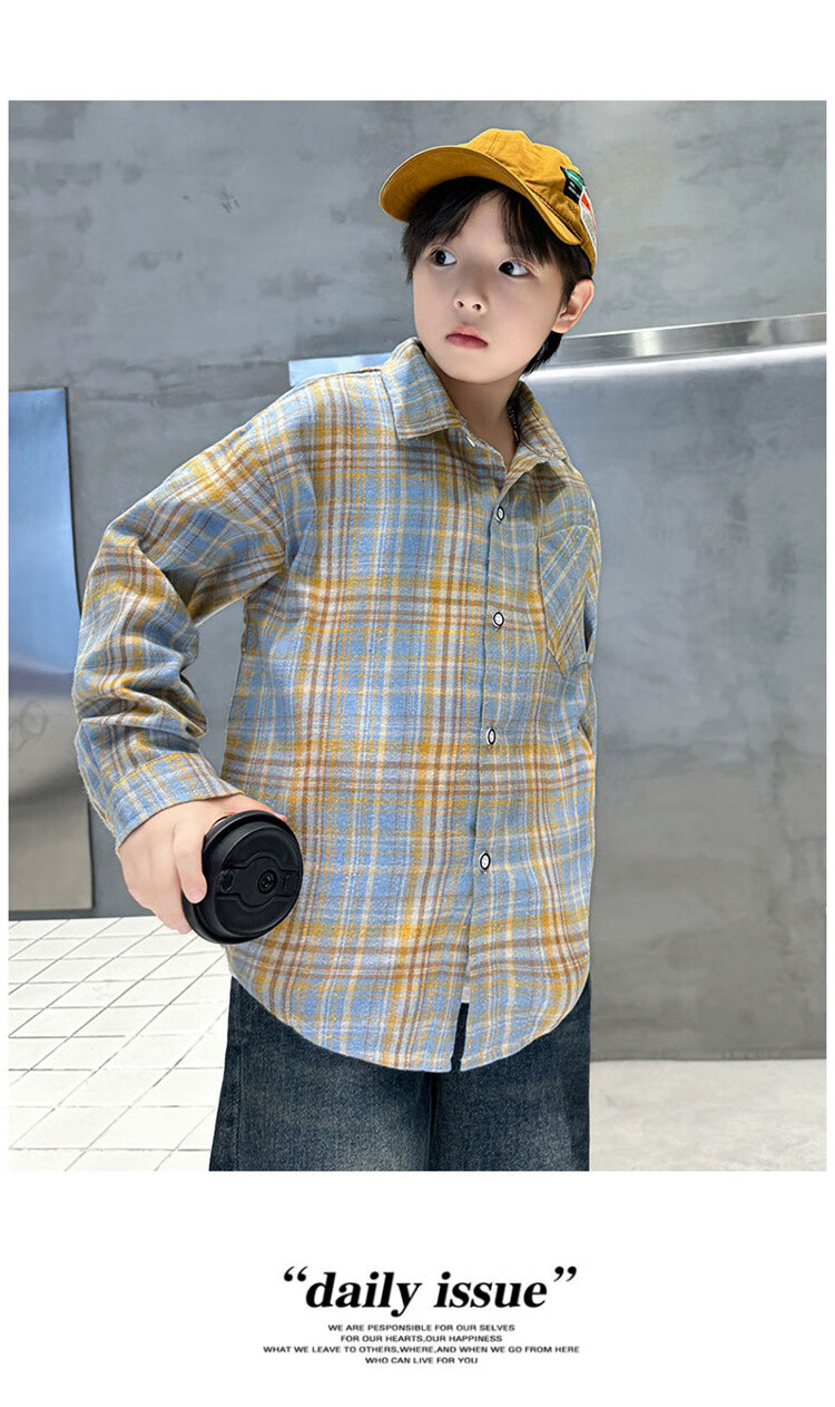 G.duck brand children's clothing boys' plaid shirts spring and autumn children's long-sleeved shirts boys' autumn clothes medium and large children's autumn clothes yellow 140