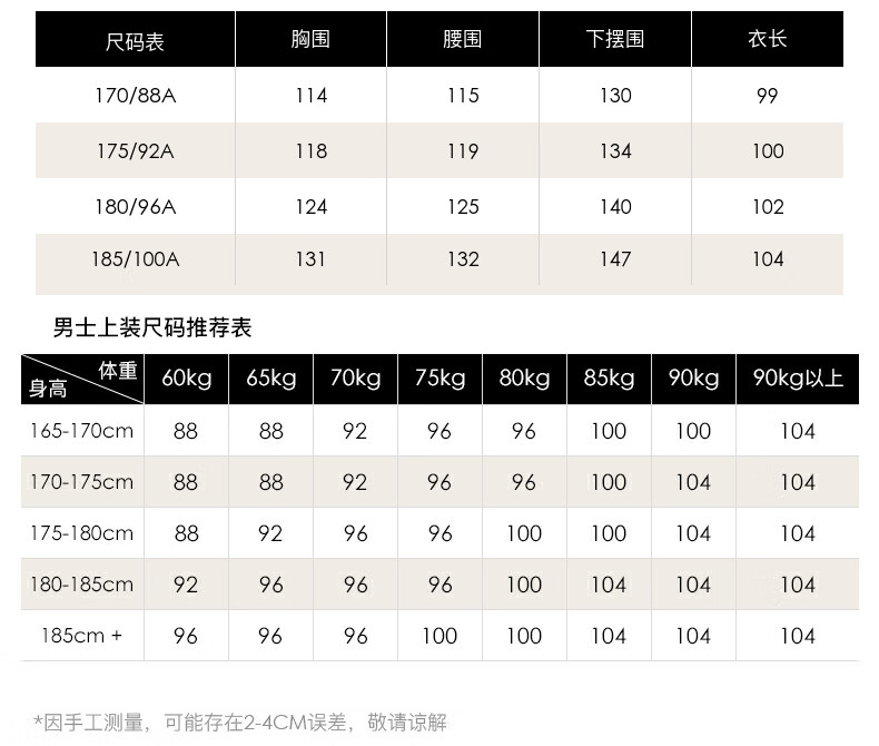 China (cm) 160-165/84-86 165-170 / 88-90 167-172 / 92-96 168-173 / 98-102 170-176 / 106-110