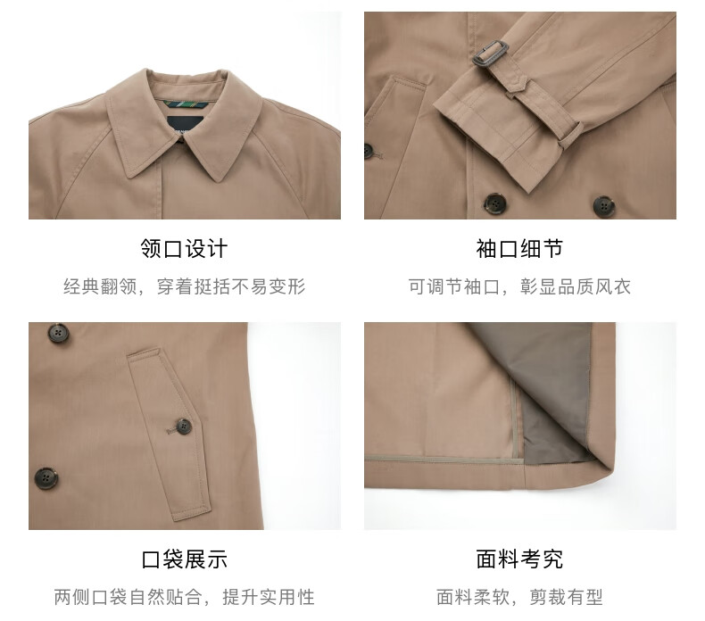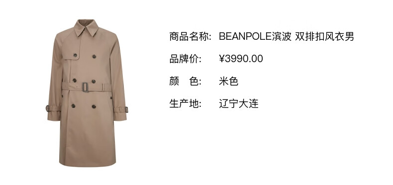 beanpole【新年礼物】商场同款中长款男双排扣英伦风休闲纯色通勤翻领风衣 米色 L 180/96A
