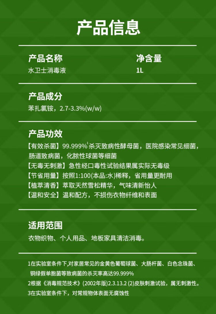 Water Guard Household Disinfectant 1L Maternal and Infant Friendly Clothing, Floor Toys, Pet Supplies, etc. Sterilization Liquid Disinfectant Water Effective Sterilization Pine 1L*1 Bottle