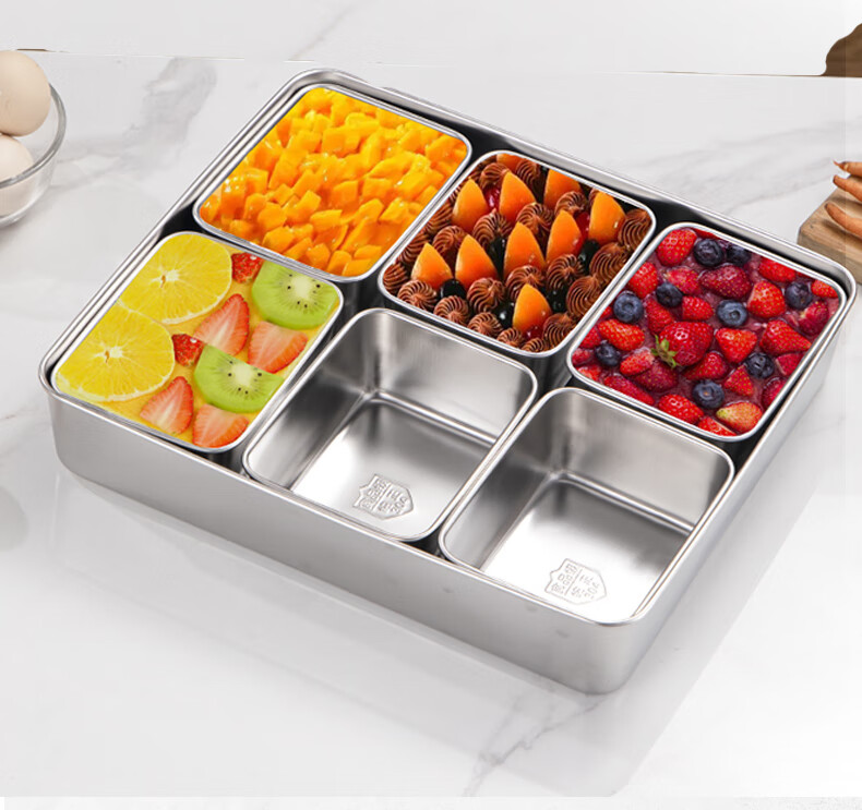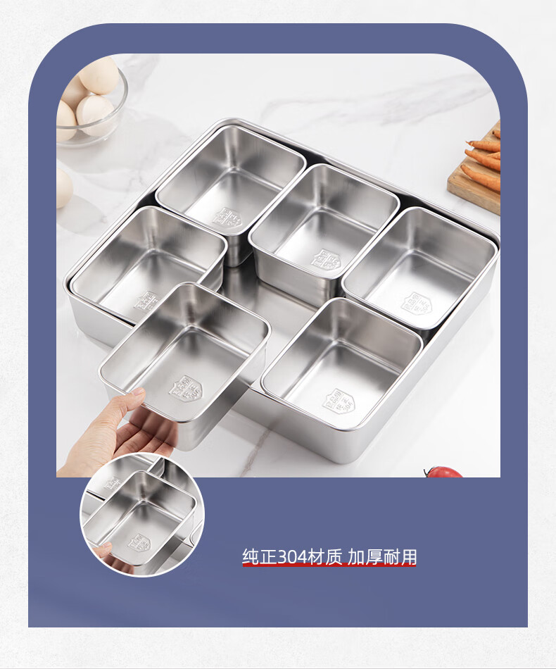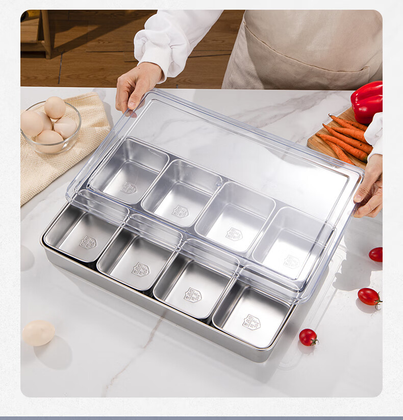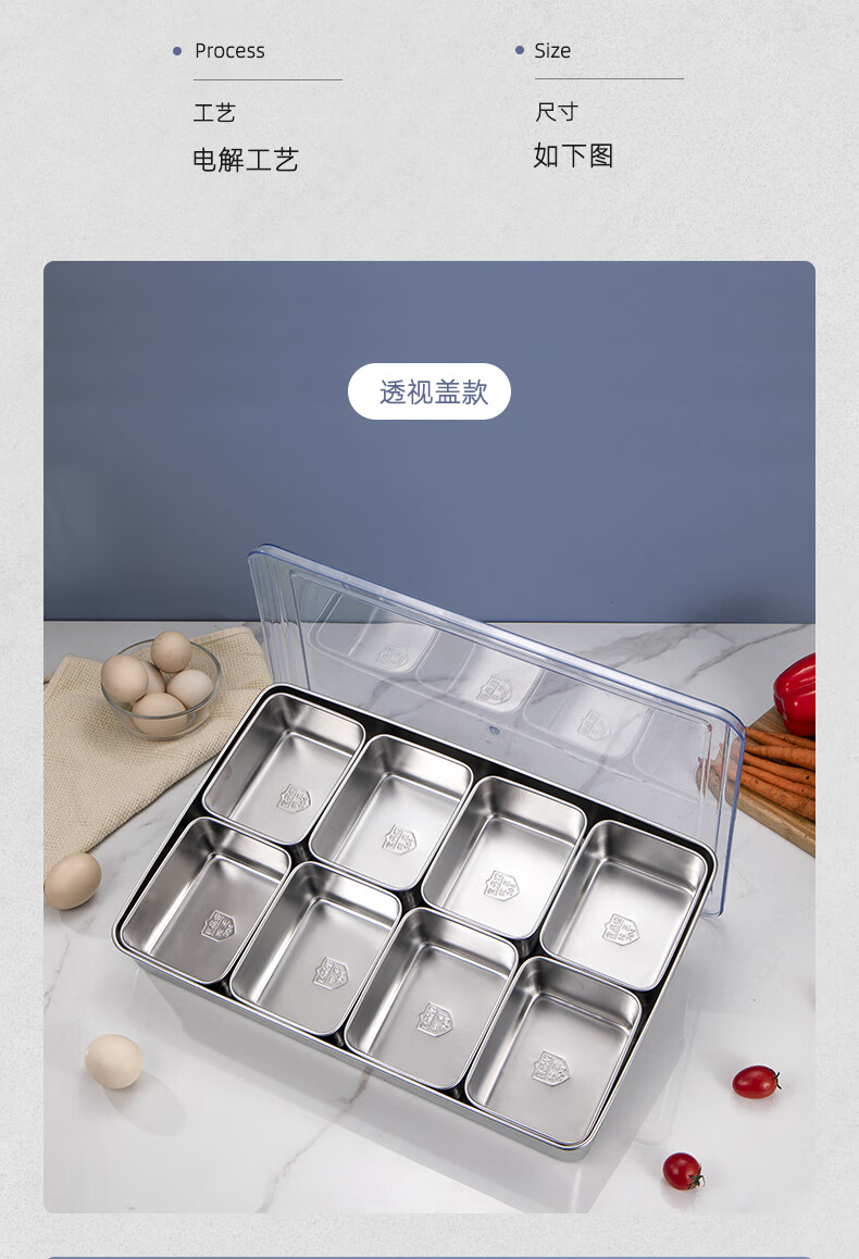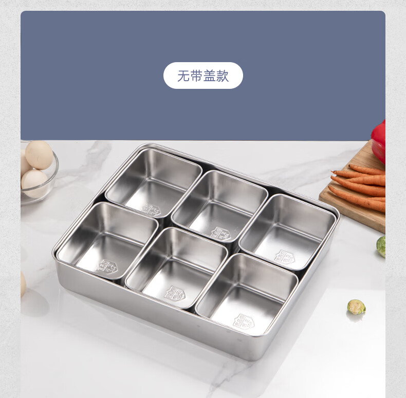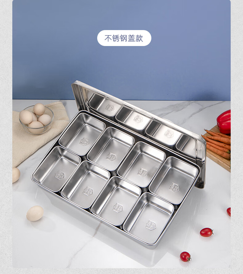 Camellia Valley stainless steel seasoning box set with lid household storage box eight-compartment six-compartment commercial stall seasoning box commercial model non-magnetic eight-compartment with lid