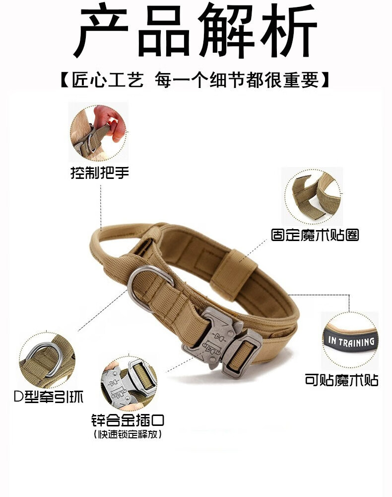 Tanbeiman Dog Collar Medium and Large Dog Tactical Collar Horse Dog German Shepherd Labrador Bulldog Anti-breakaway Anti-explosion Collar Tactical Collar + Traction Rope (Suitable for 65-90 Jin Jin equals 0.5 kg) Upgraded Thickened Anti-explosion Collar