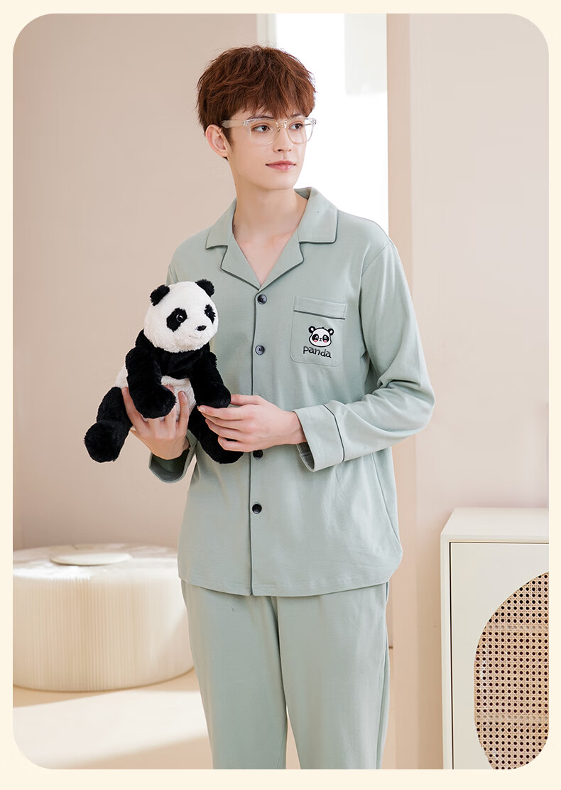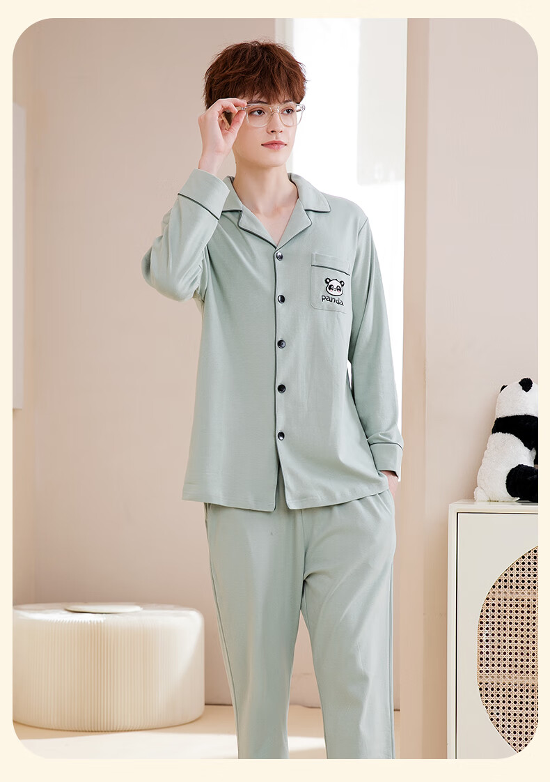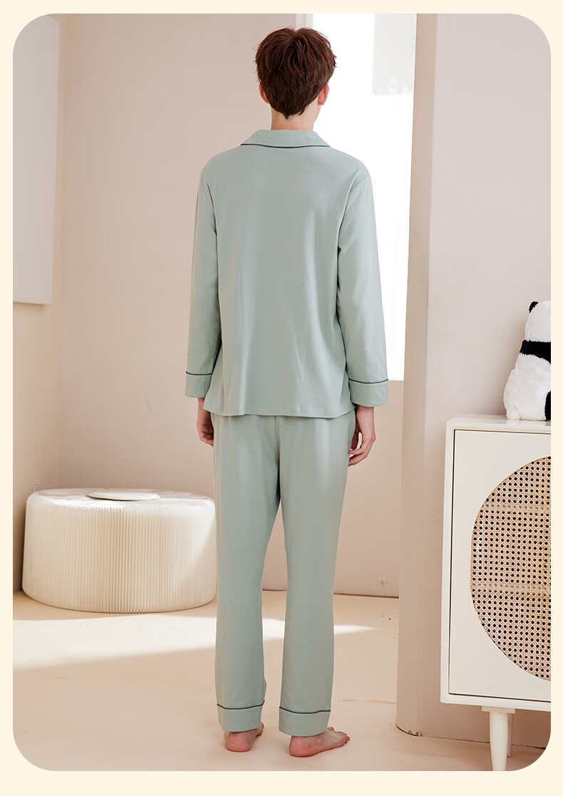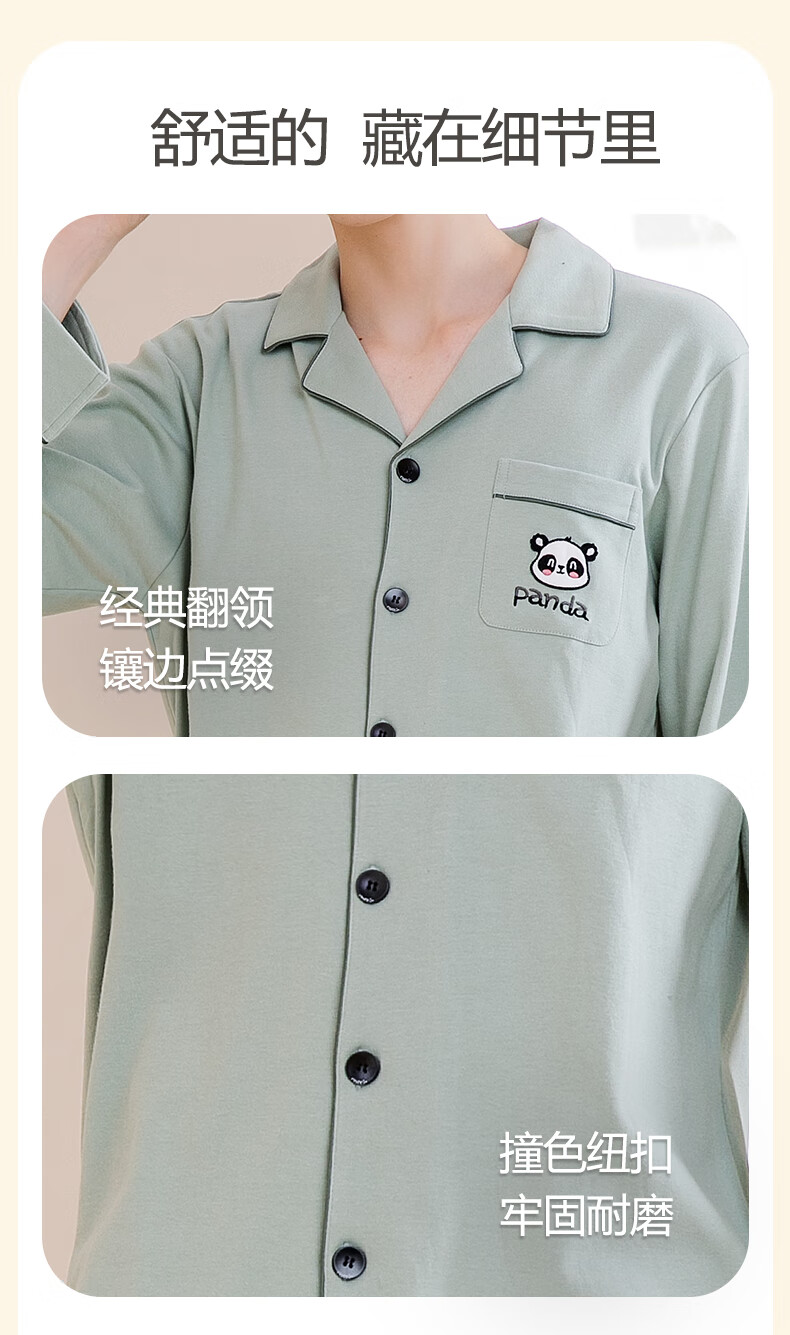 Fenton's new soft lace lapel men's home wear pajamas set gray green (men) 3XL