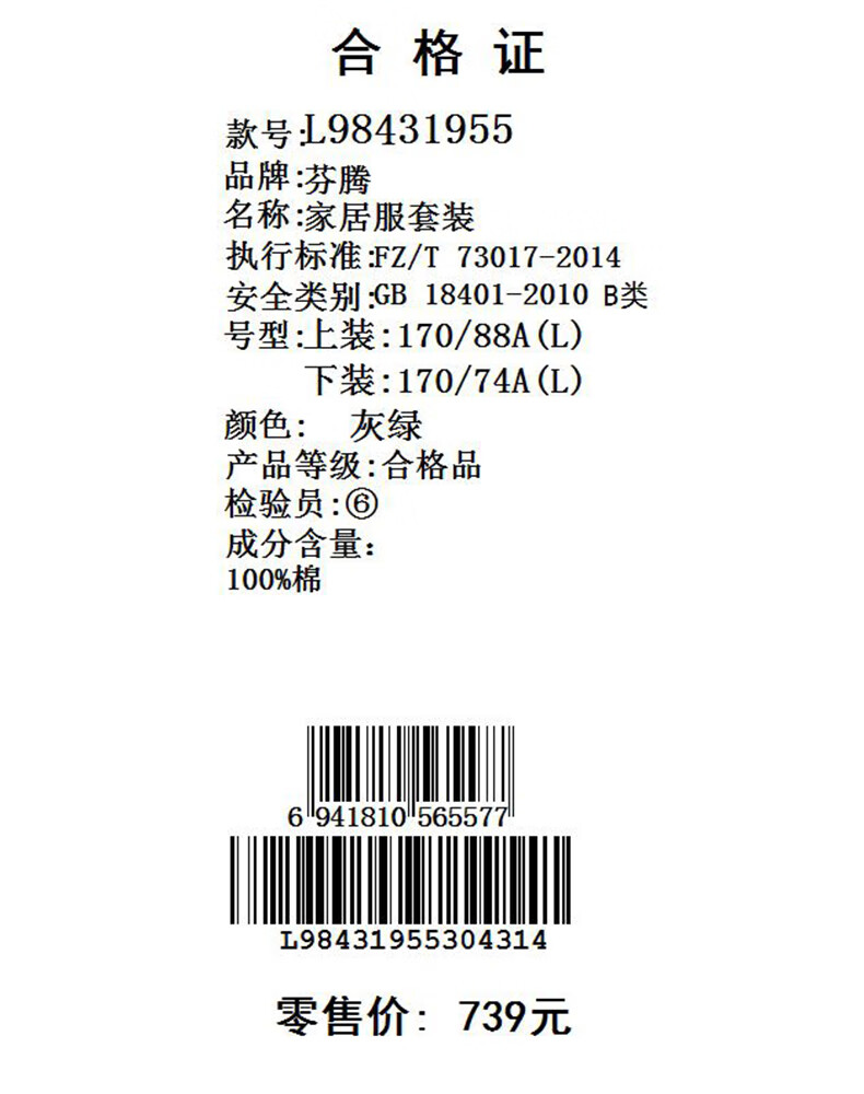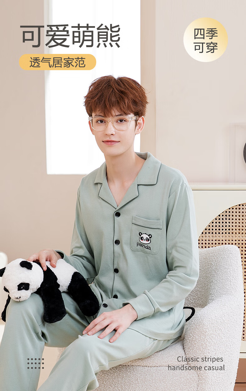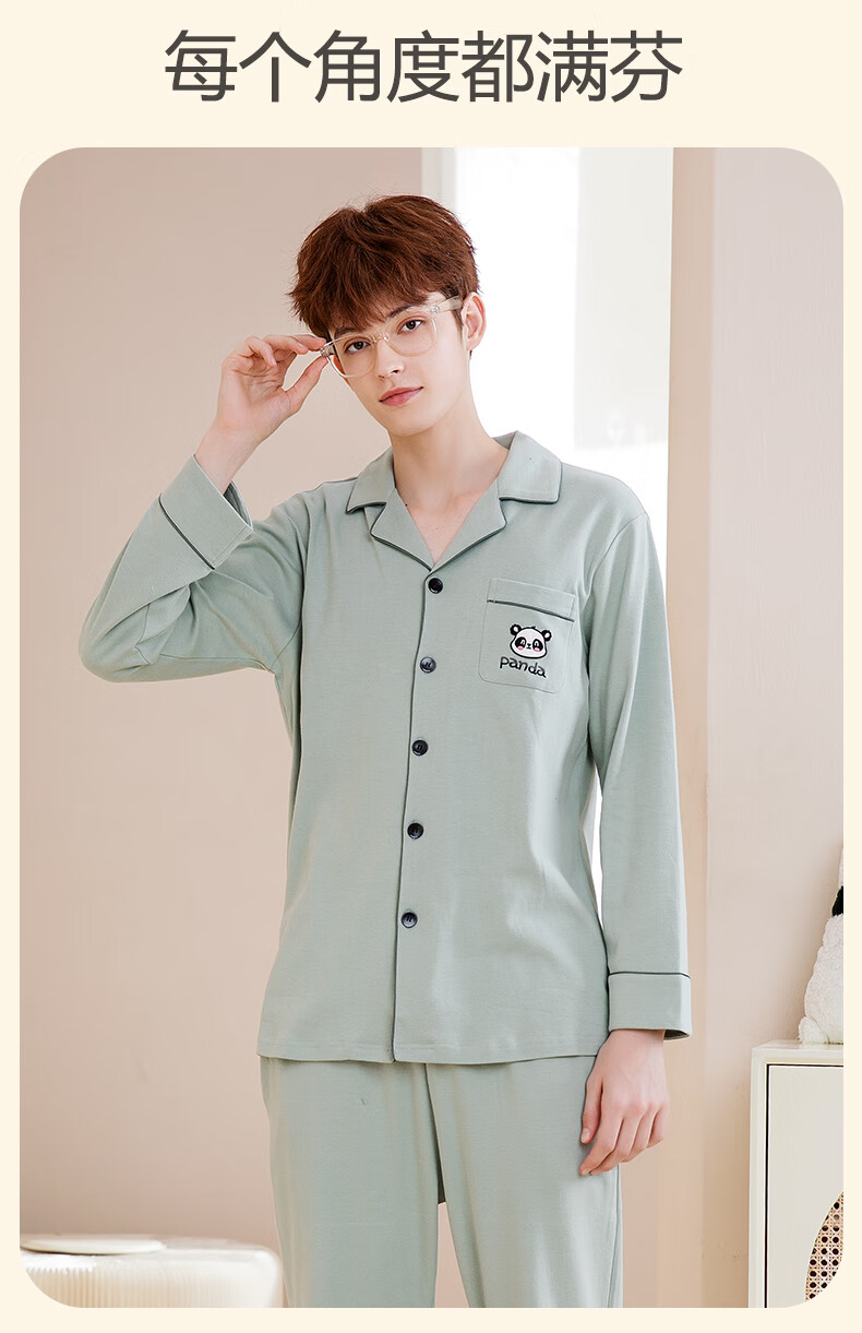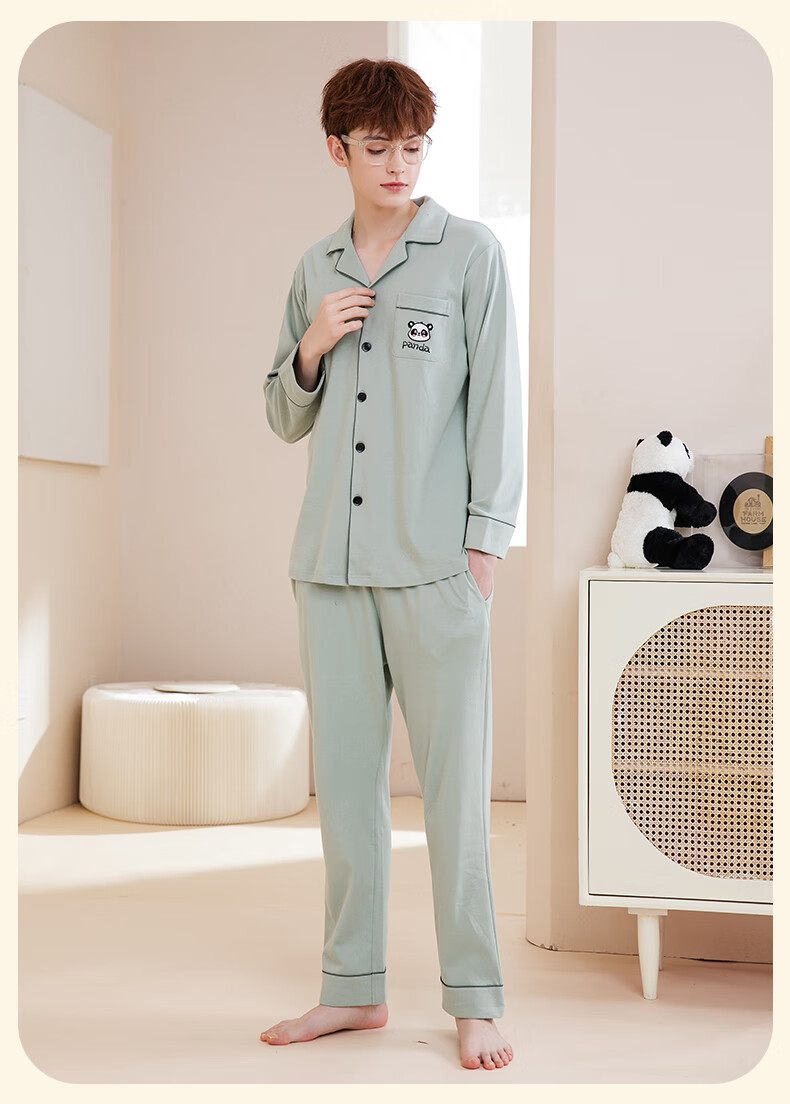 Fenton's new soft lace lapel men's home wear pajamas set gray green (men) 3XL