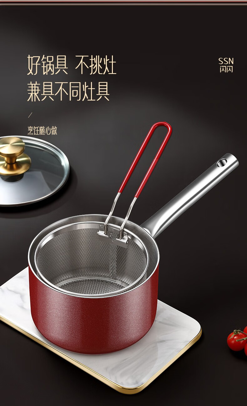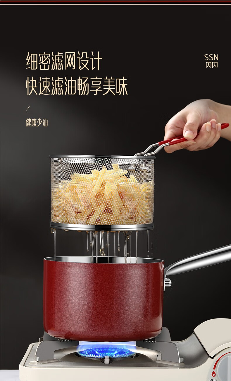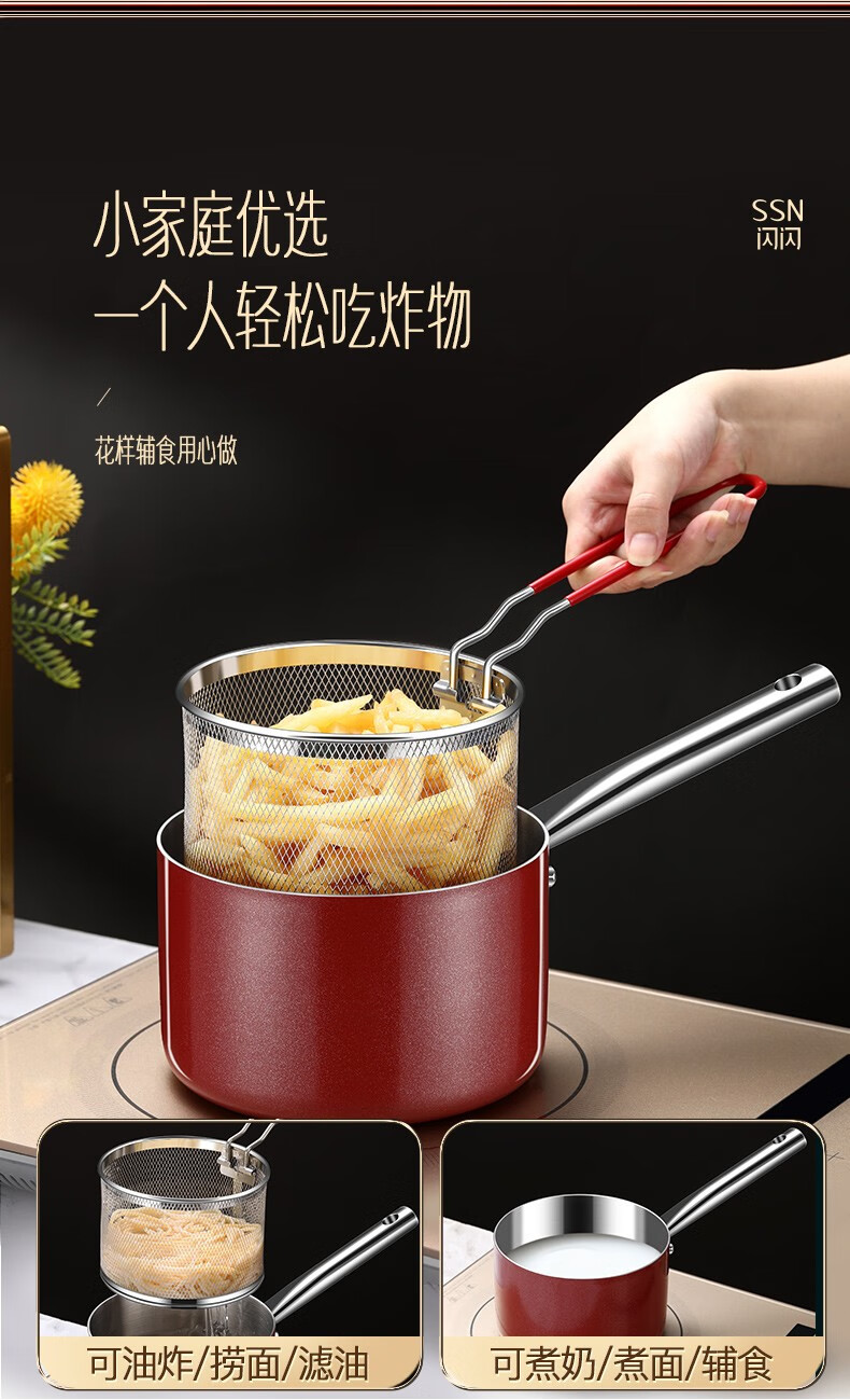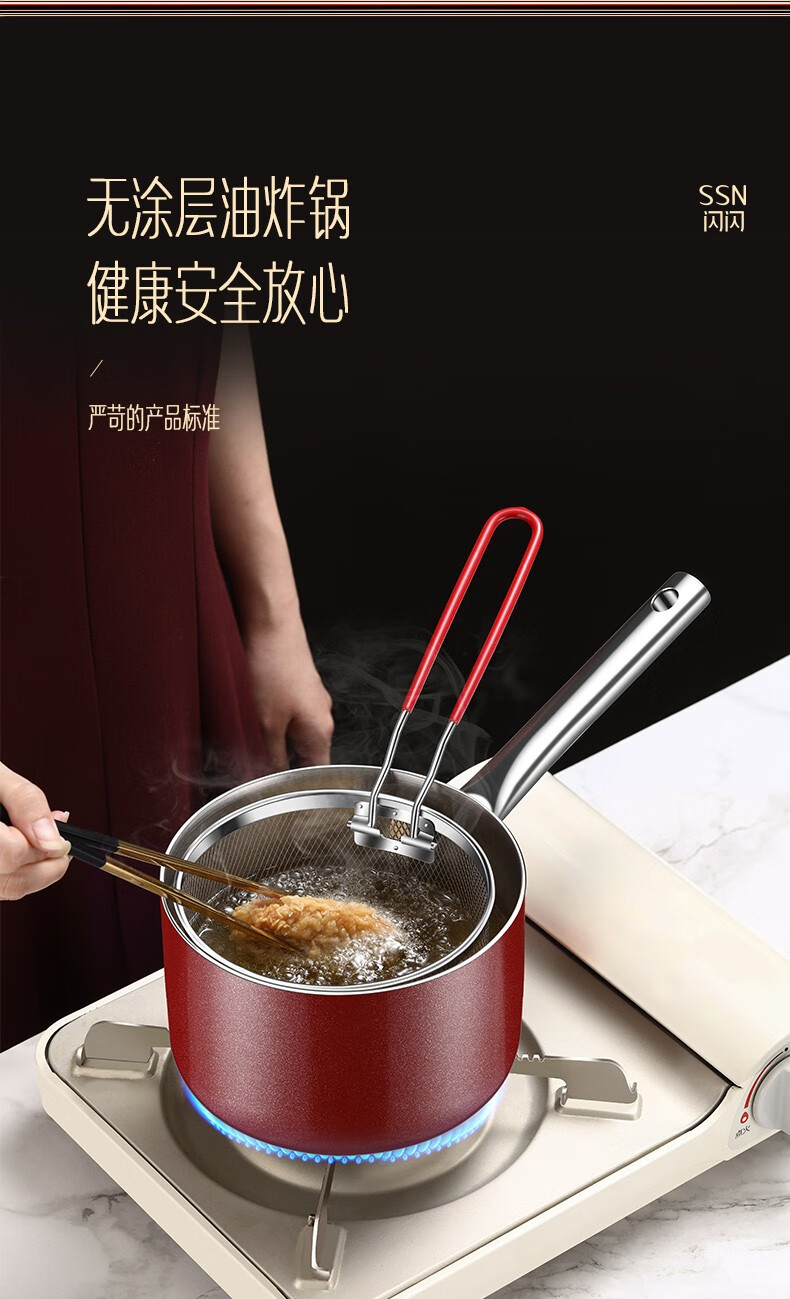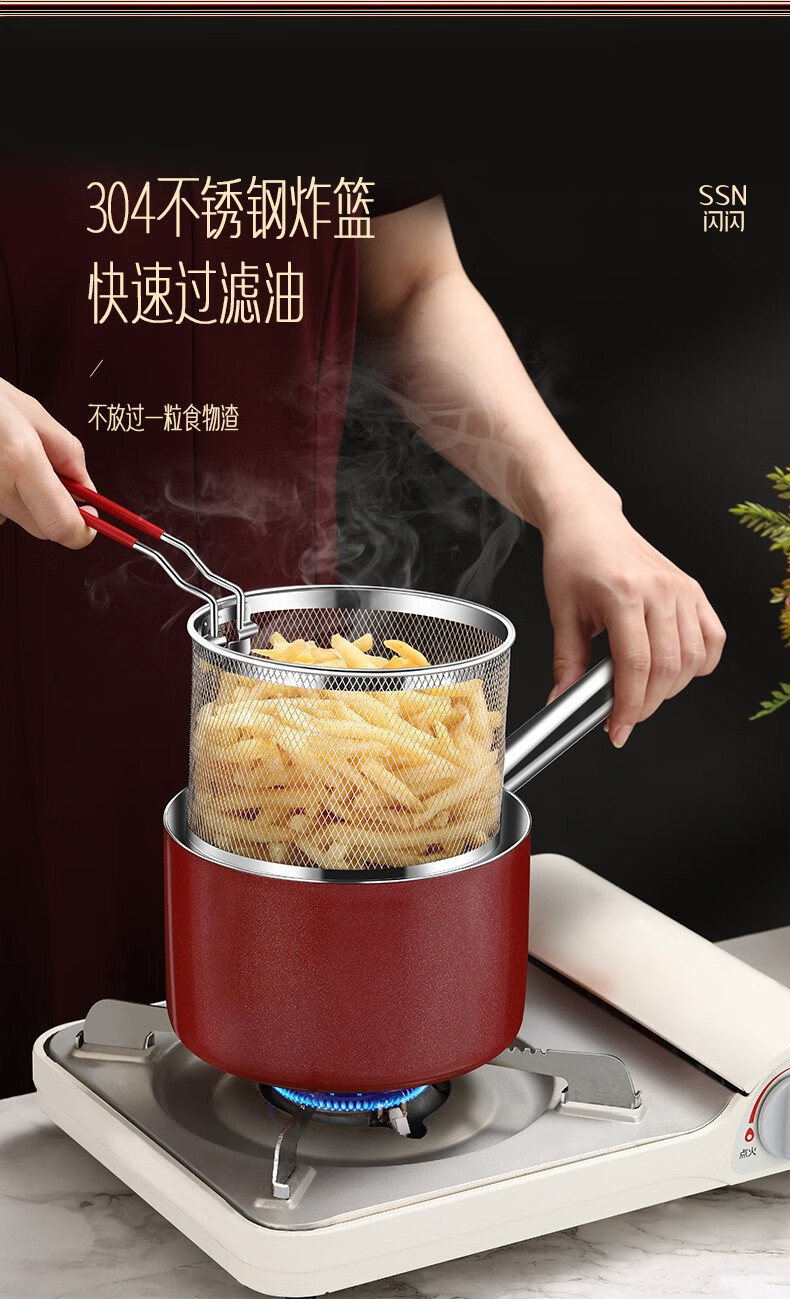 Shining premium frying pan household 304 stainless steel special frying pan kitchen small frying pan gas fried egg artifact fried skewers with frying basket small frying pan 16cm