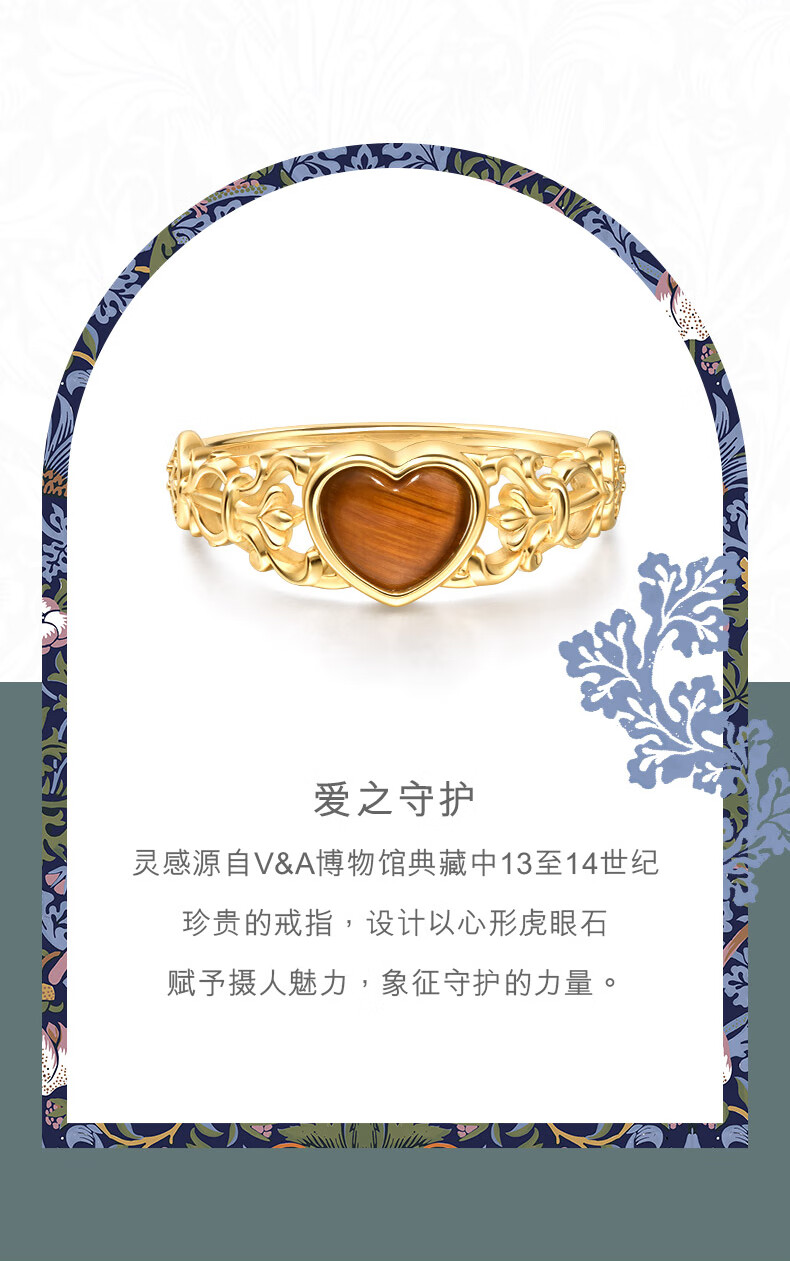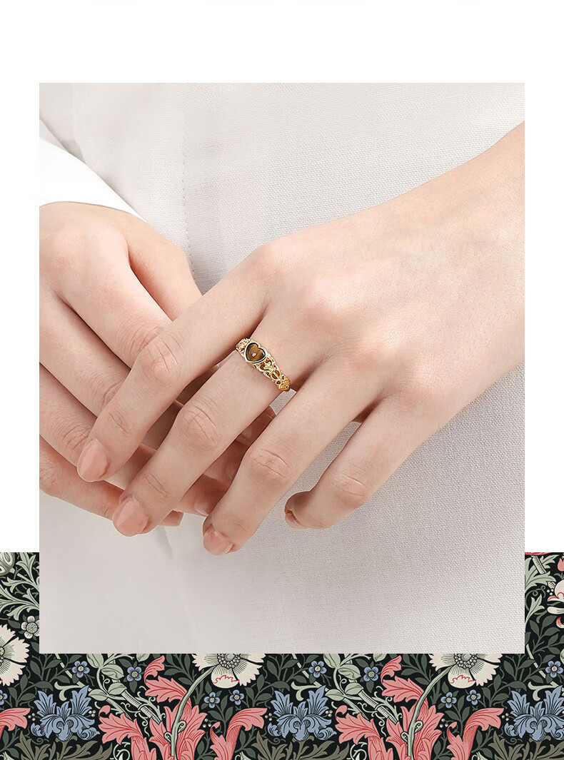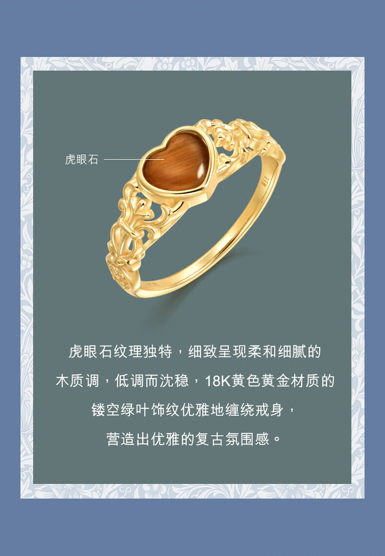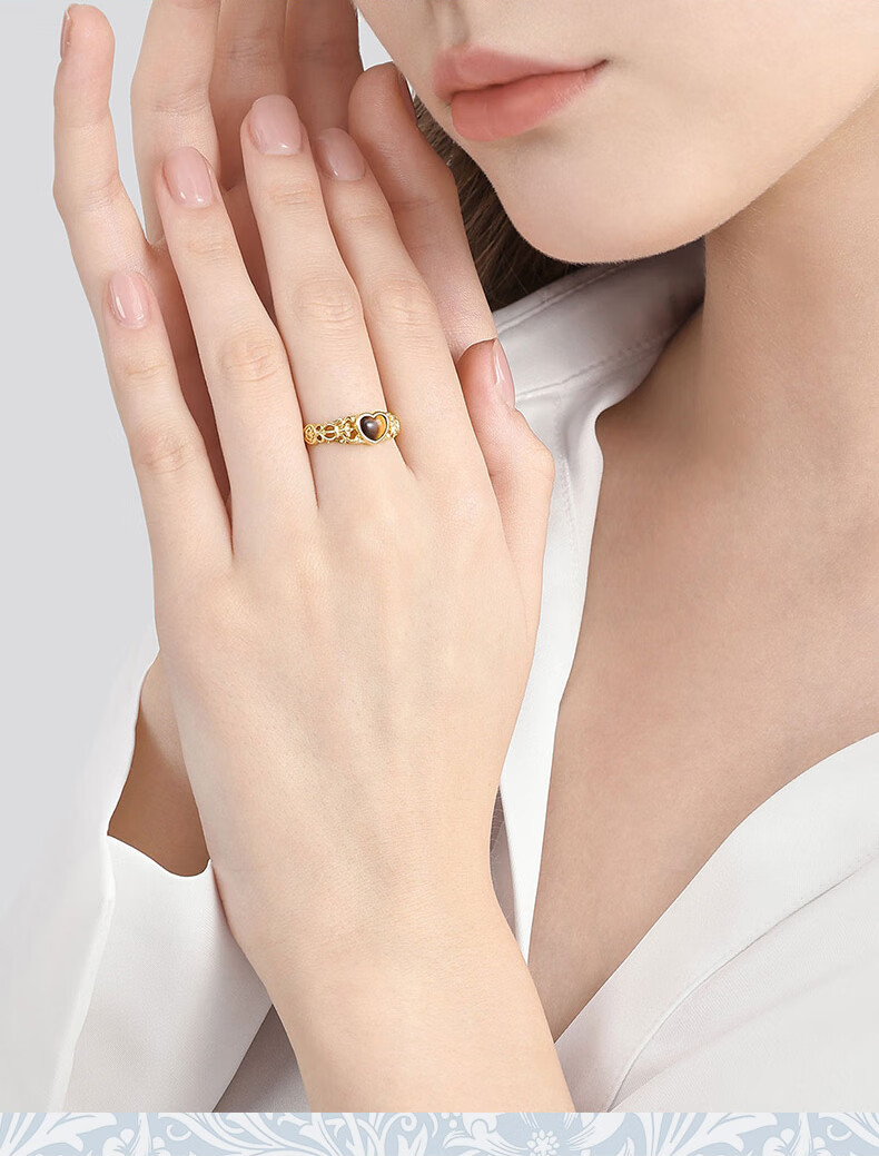 Chow Sang Sang Love Guardian Ring V&A Series 18K Gold Heart-Shaped Tiger Eye Stone Ring 94117R Pricing 13 Circles