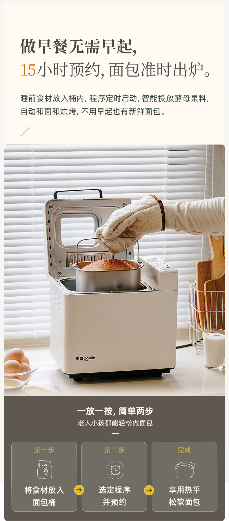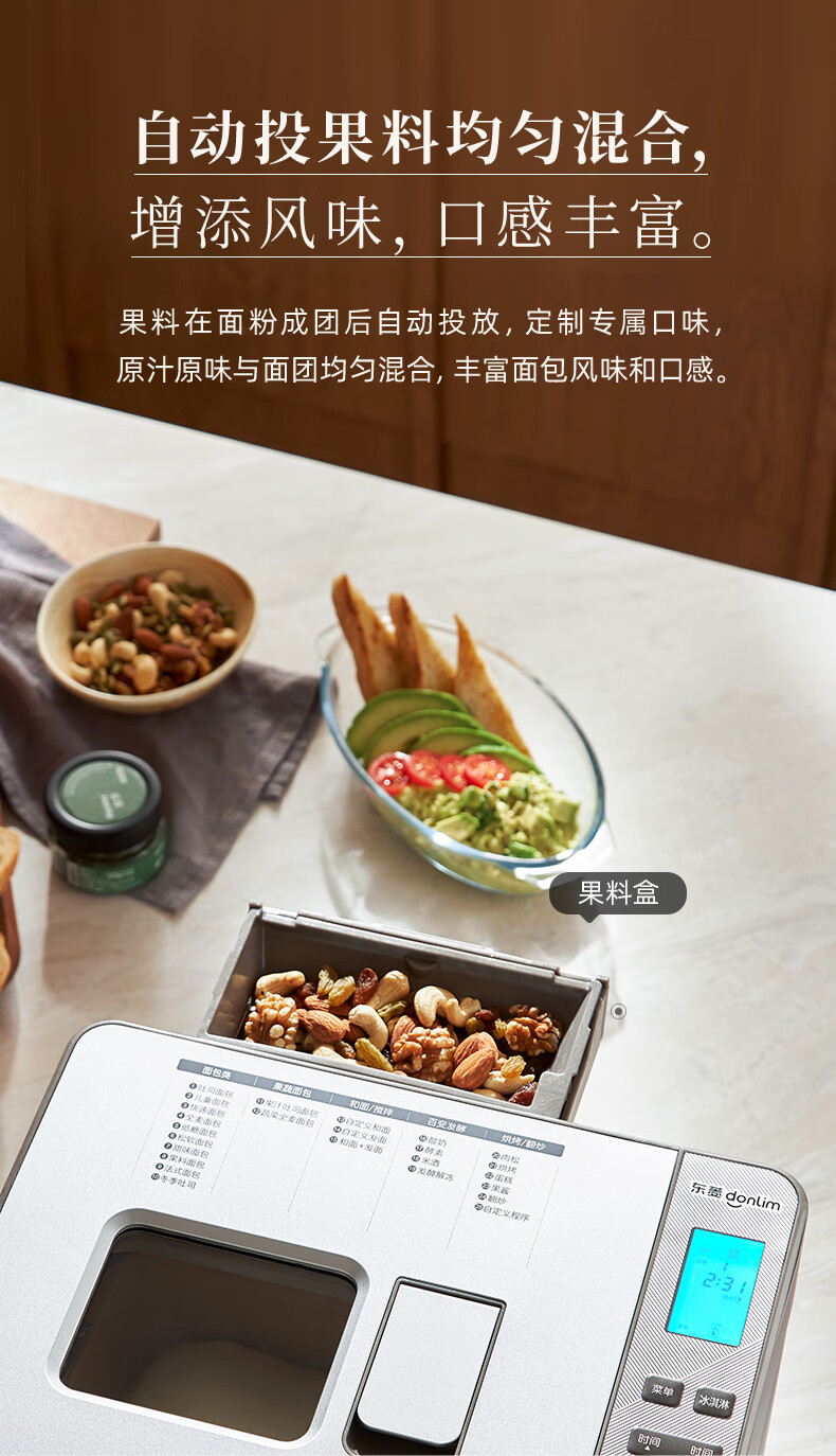 Donlim multi-function large-capacity bread machine kneading machine for home use, can be reserved for baking and making breakfast, fully automatic all-in-one machine, automatic spreading, intelligent control toaster DL-4705 gray ((new upgrade)