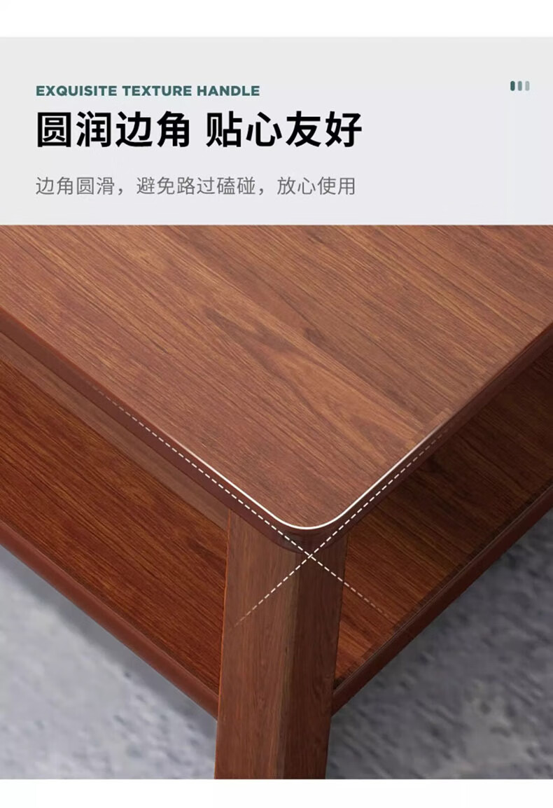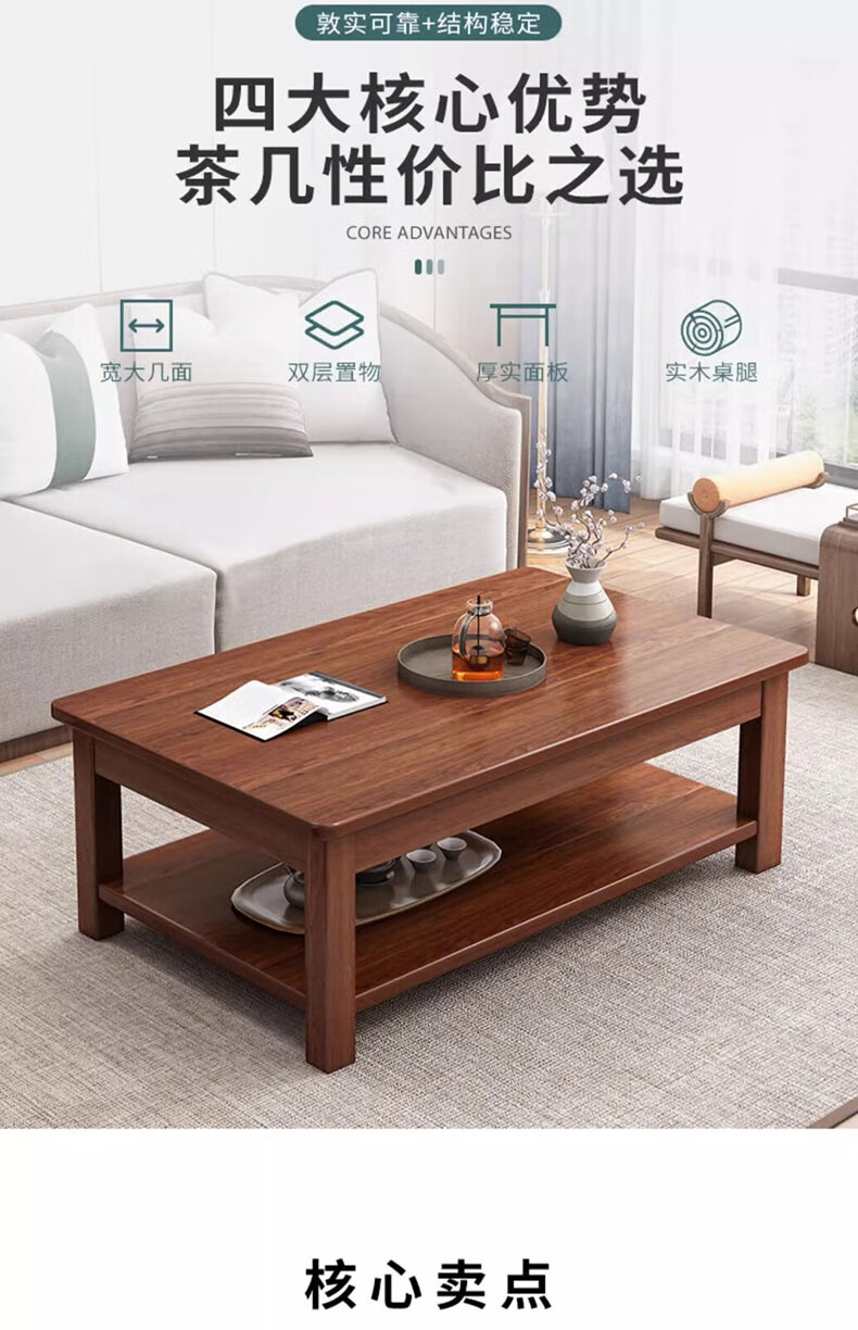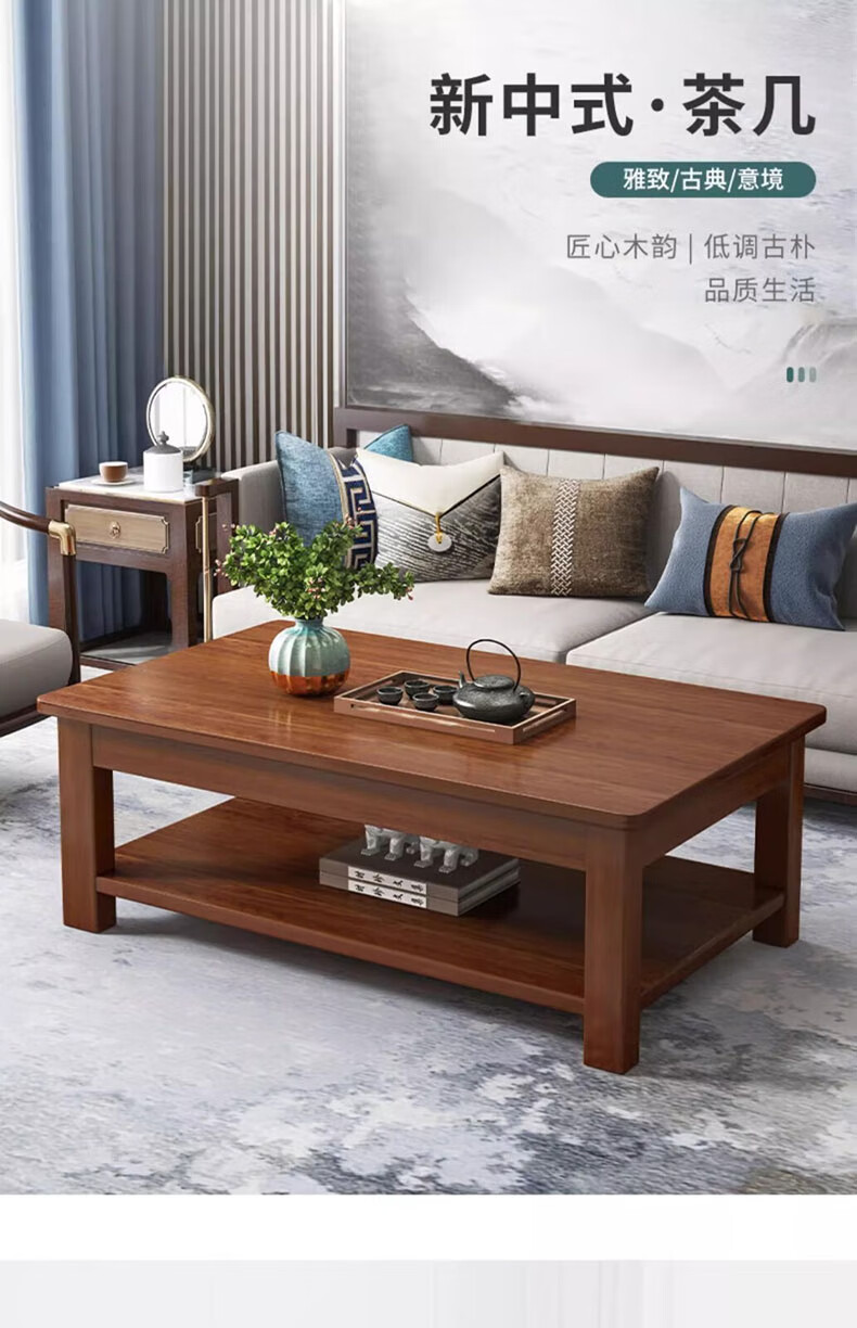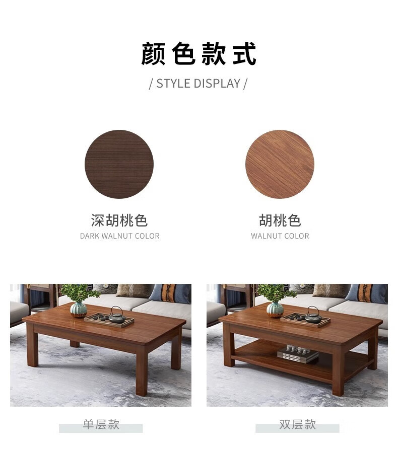 Handmade solid wood coffee table living room home small apartment coffee table office simple table solid wood frame table rectangular tea table double layer deep walnut color 80X50X45CM