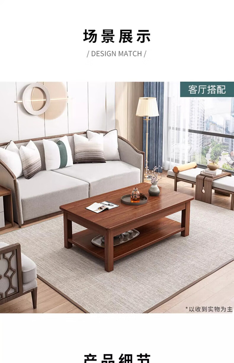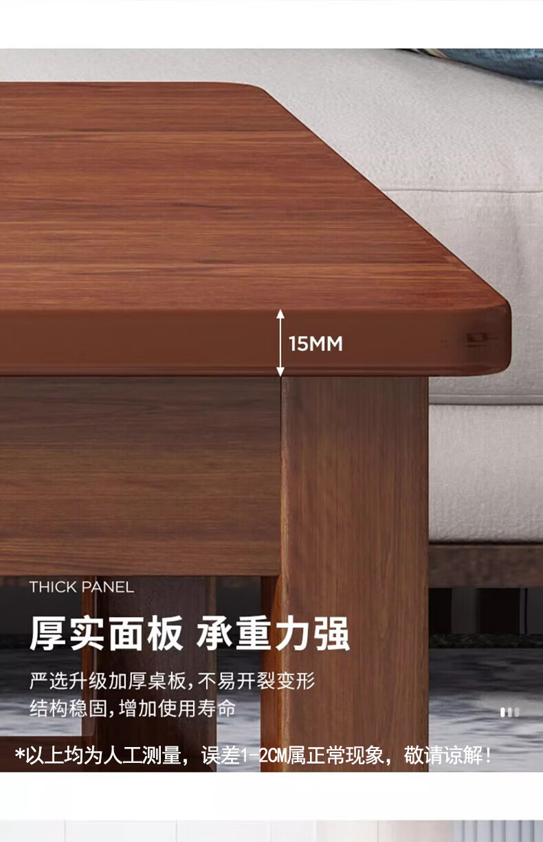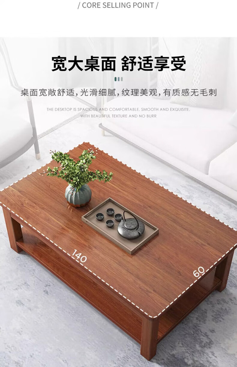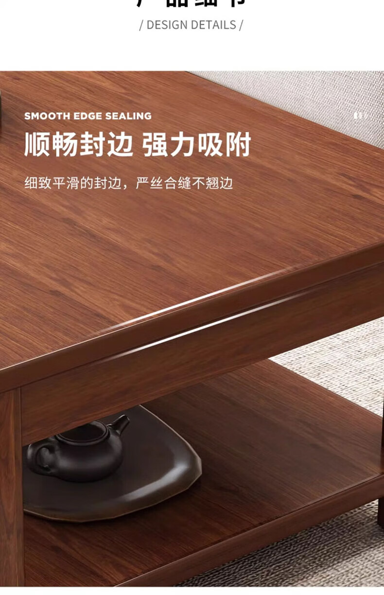 Handmade solid wood coffee table living room home small apartment coffee table office simple table solid wood frame table rectangular tea table double layer deep walnut color 80X50X45CM