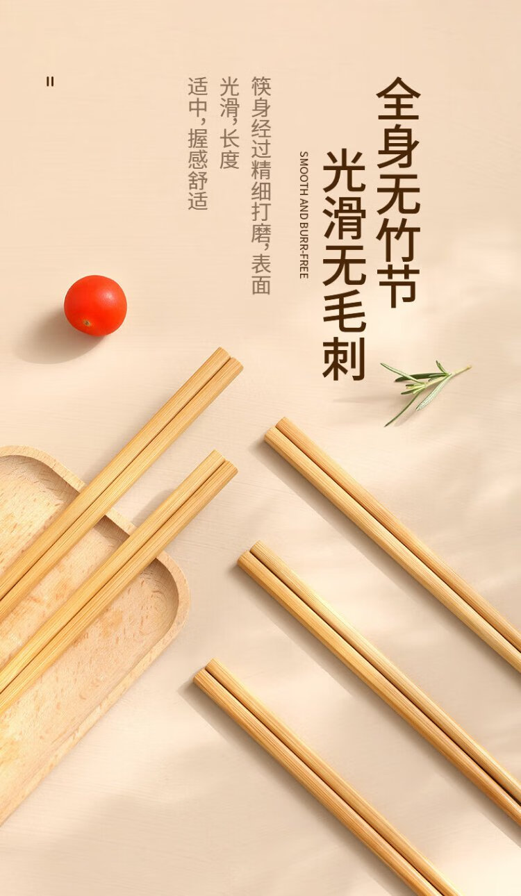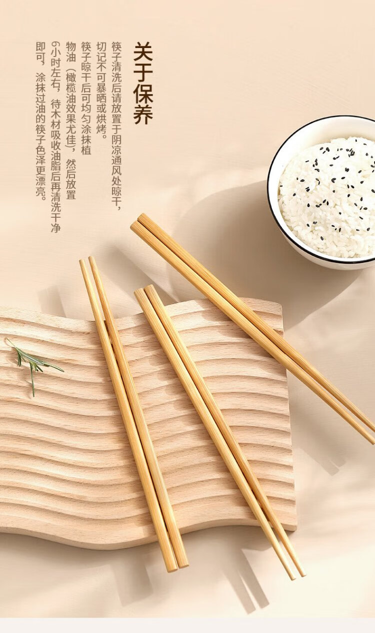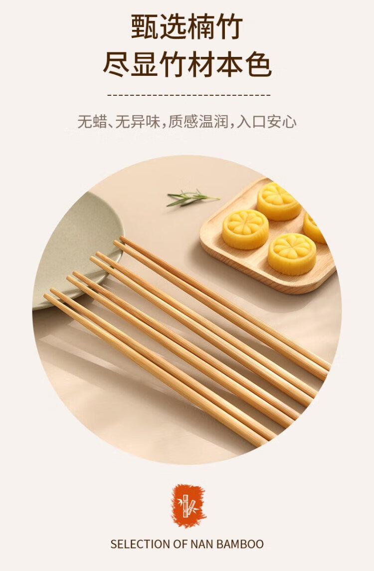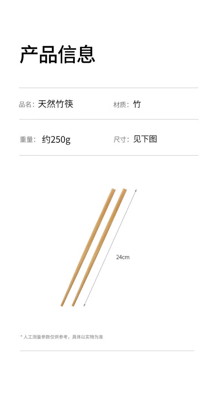 星坊天然竹筷子不易发霉无漆无蜡原竹耐高温家用竹筷餐具套装火锅筷 24cm20双装