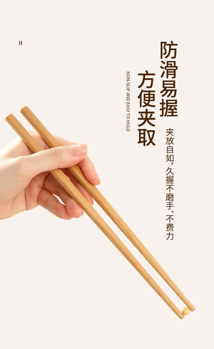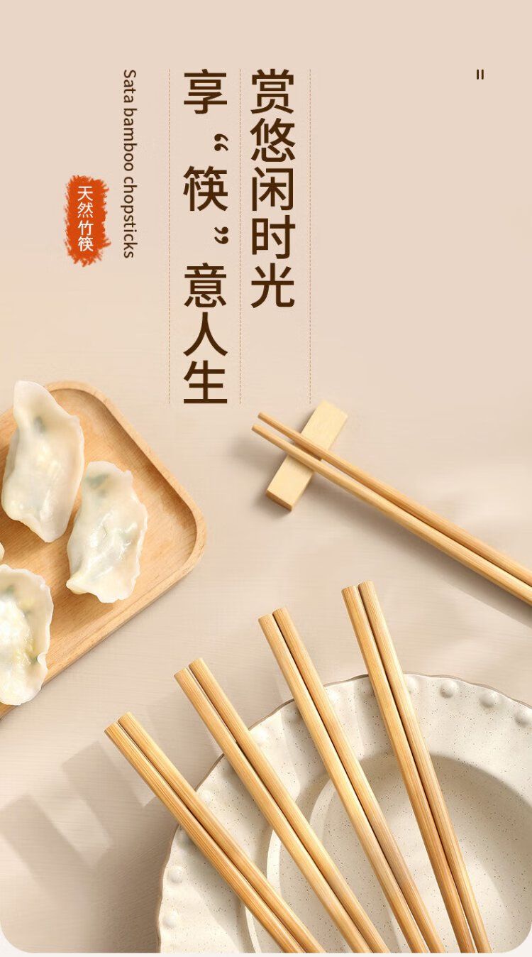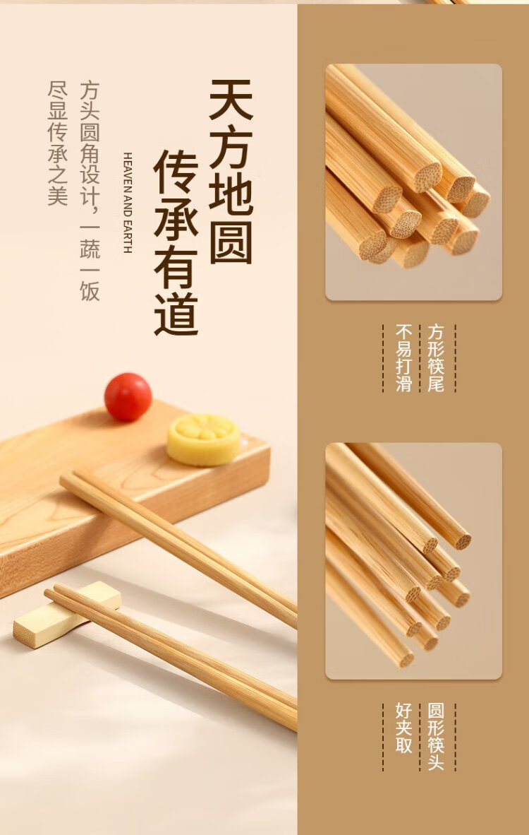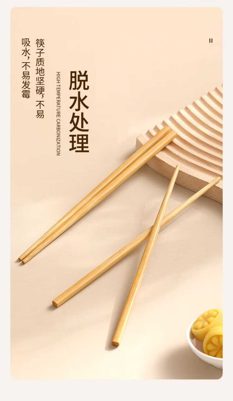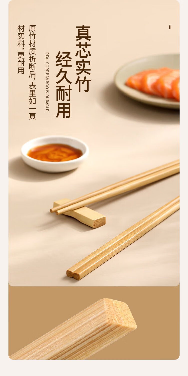 星坊天然竹筷子不易发霉无漆无蜡原竹耐高温家用竹筷餐具套装火锅筷 24cm20双装