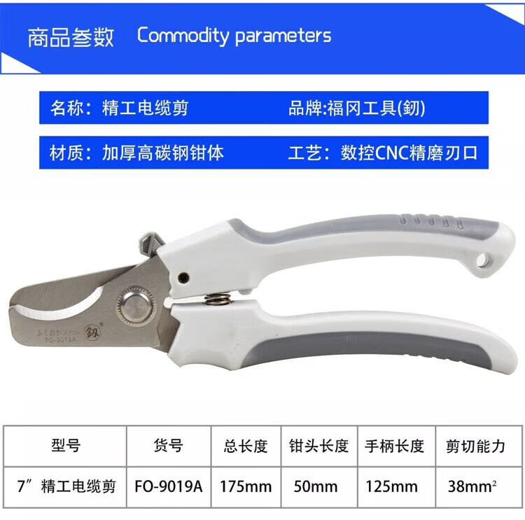 鰰釰Fukuoka Tools Seiko Cable Scissors Labor-saving, Sharp and Durable 7-inch FO-9019A 釰FO-9019A