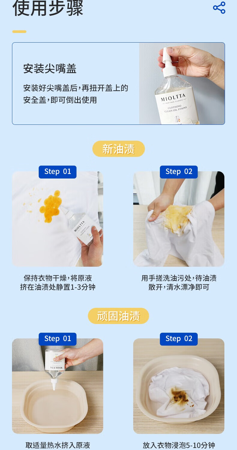 MIOLTTA Oil-stained Clothes Cleaner, Stubborn Stains Cleaner, White Clothes Powerful Oil and Contamination King Oil Stain Remover 250ml 1 Bottle