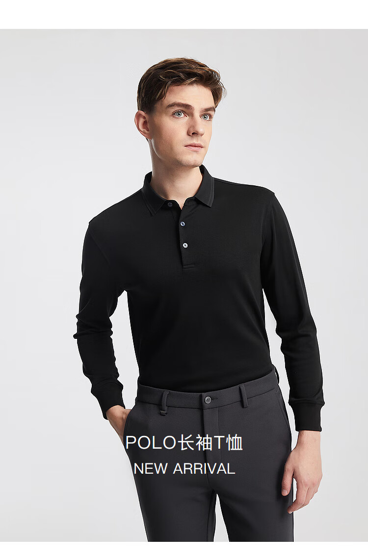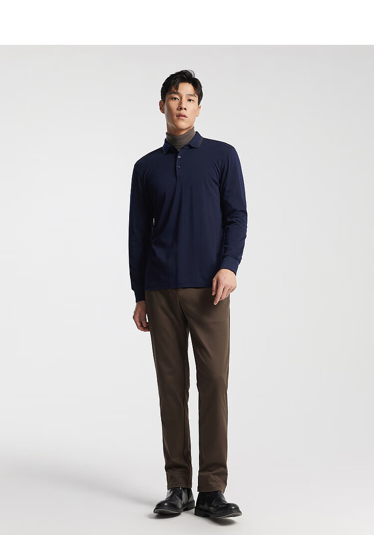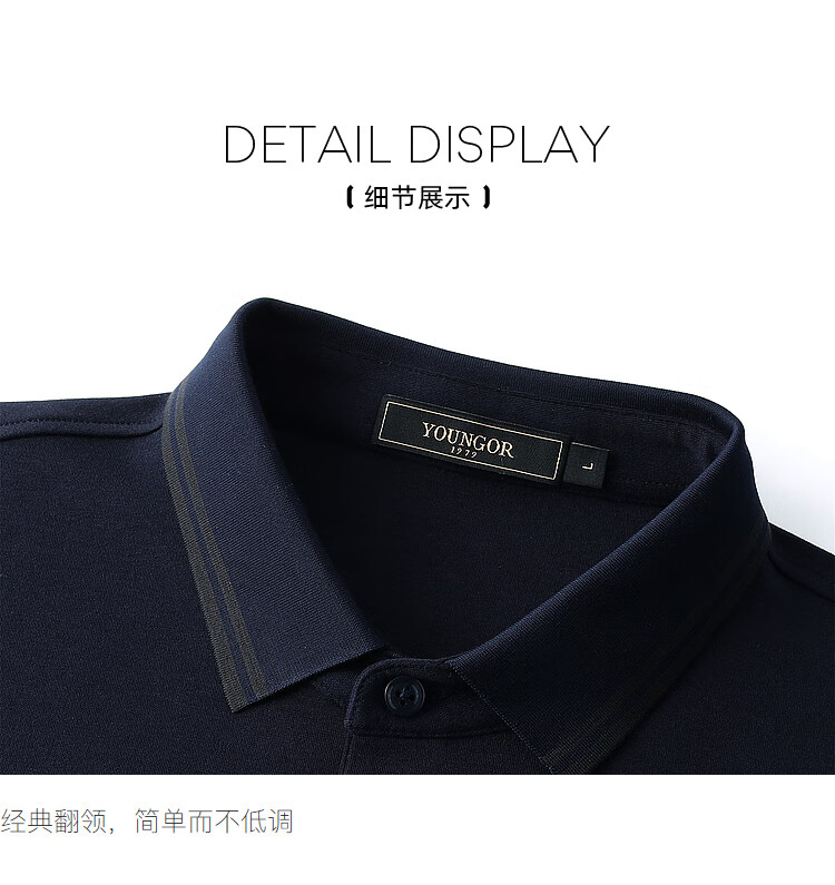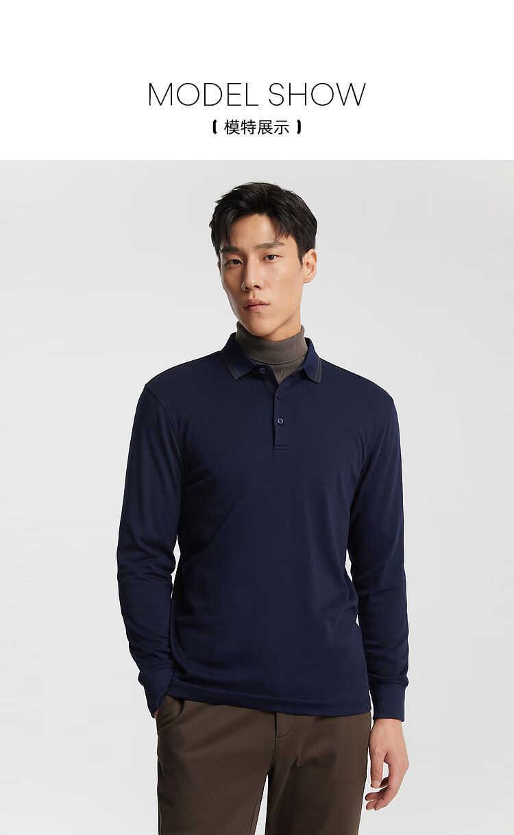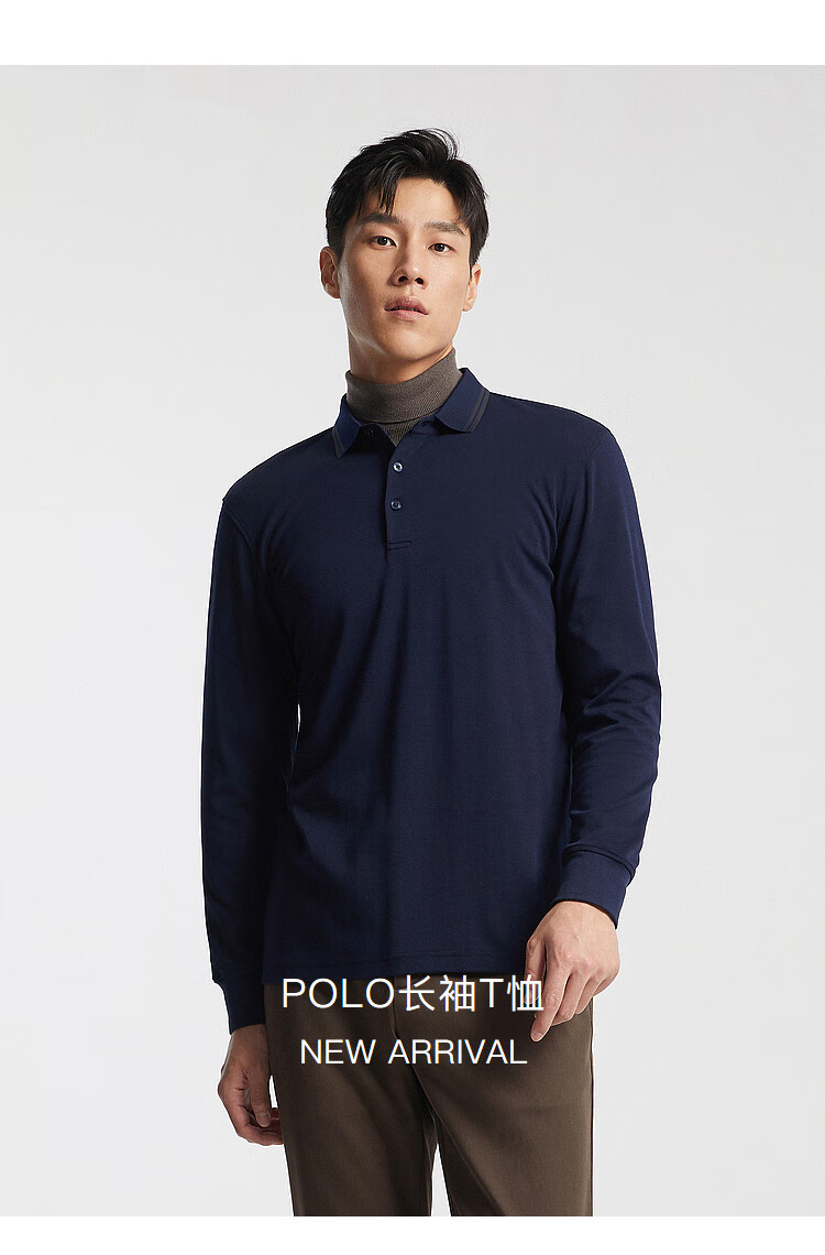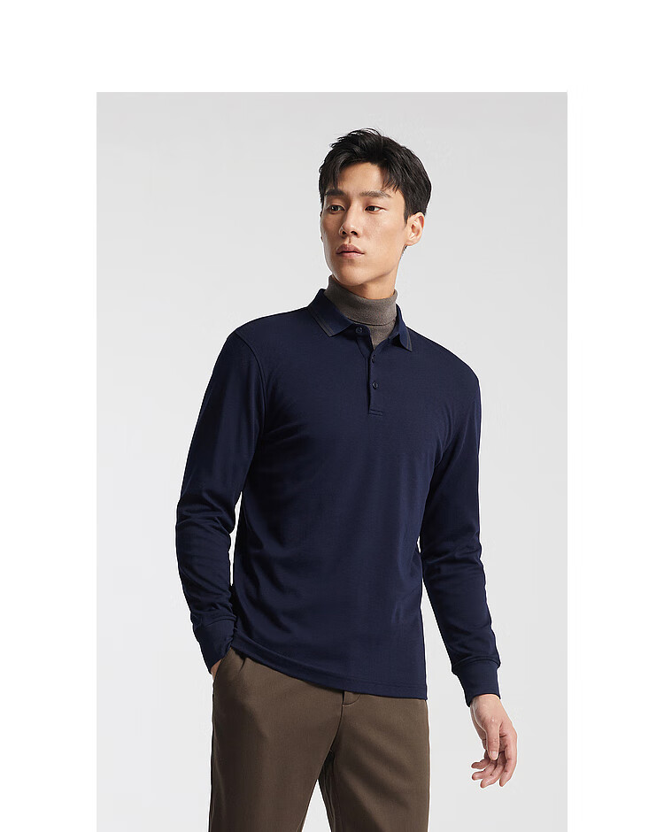 YOUNGOR long-sleeved POLO shirt for men, soft, delicate and comfortable modal blended cotton with exquisite craftsmanship, navy blue VLPC539969FCA L