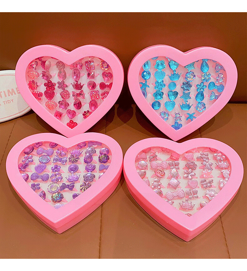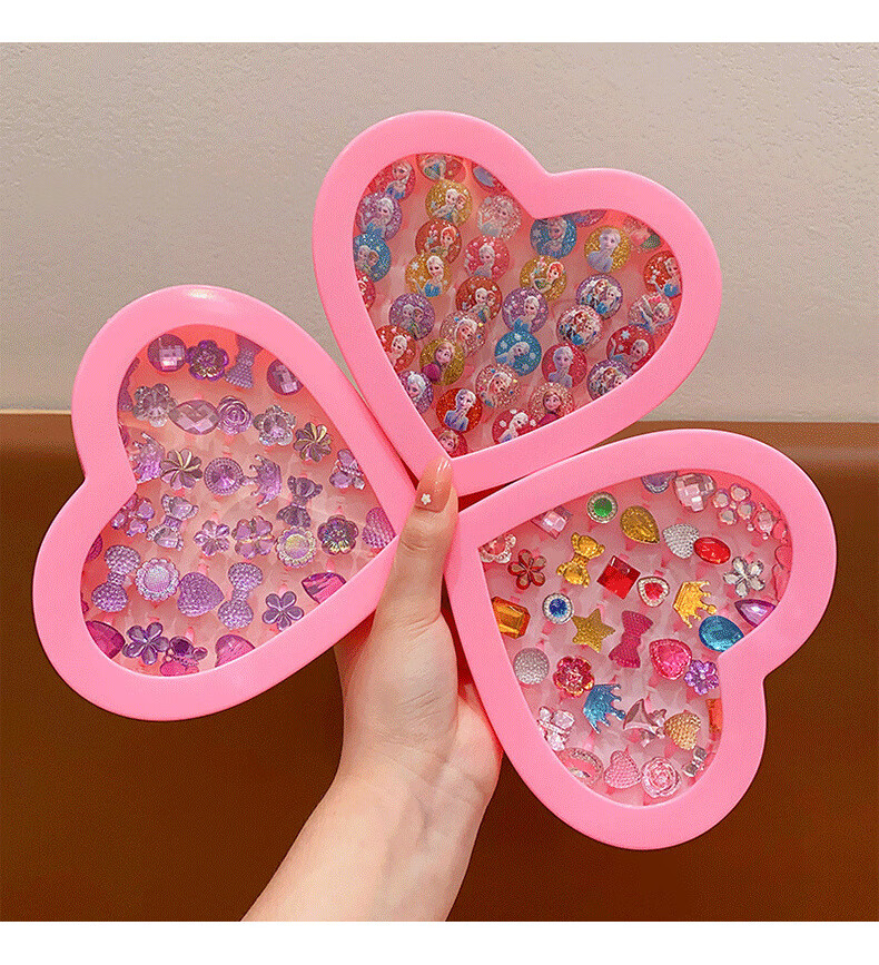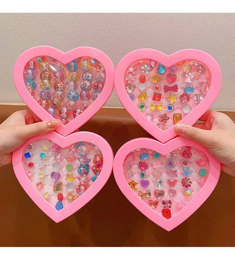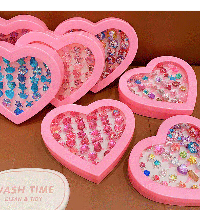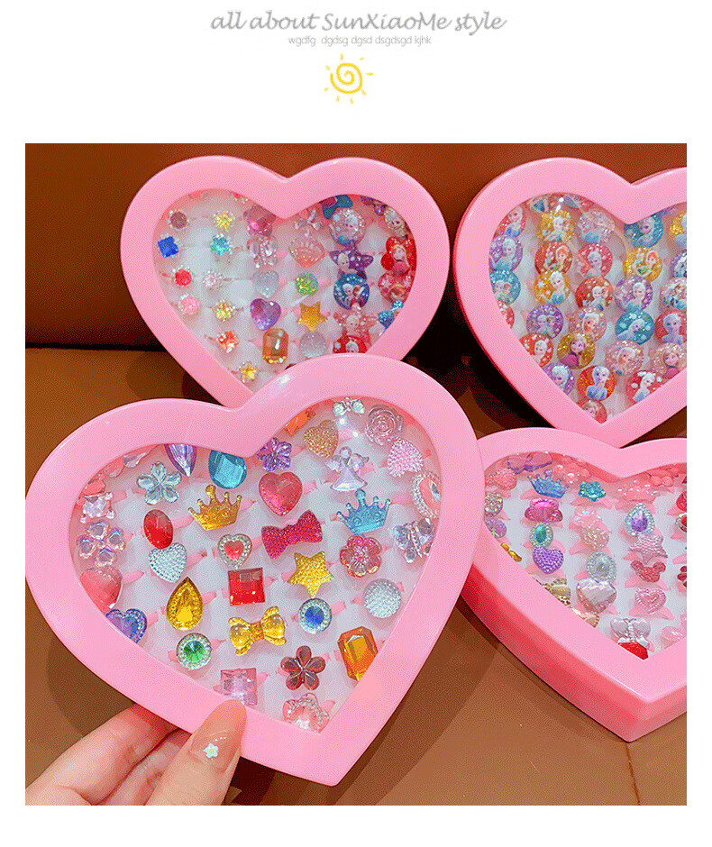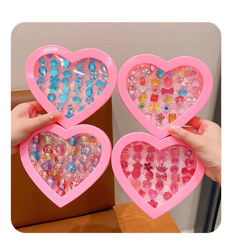 Cela children's gem ring princess cute cartoon diamond jewelry girl baby ring gift box set little girl pink princess 36 pieces A21-109