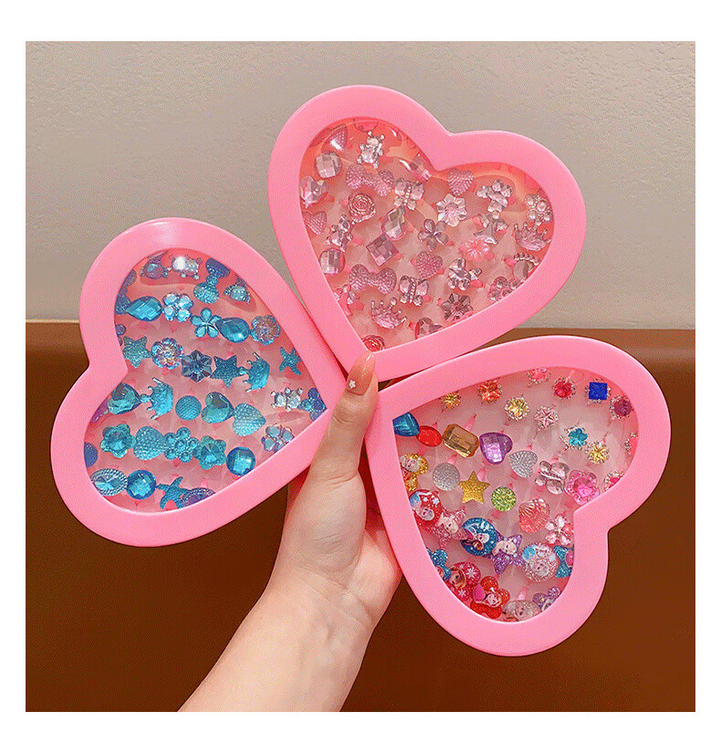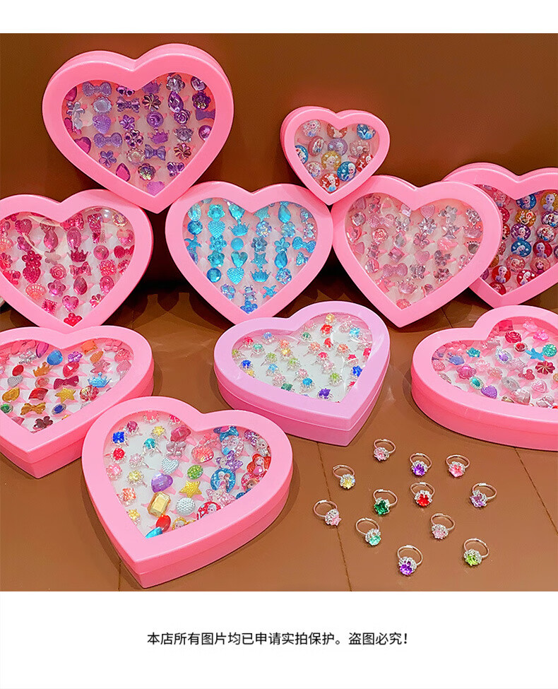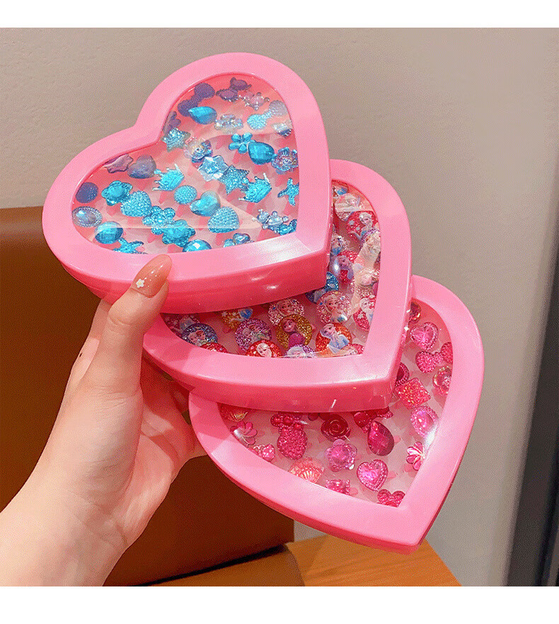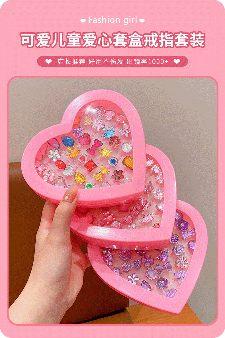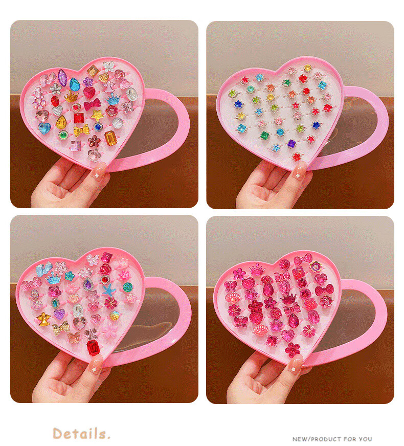 Cela children's gem ring princess cute cartoon diamond jewelry girl baby ring gift box set little girl pink princess 36 pieces A21-109