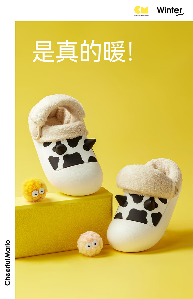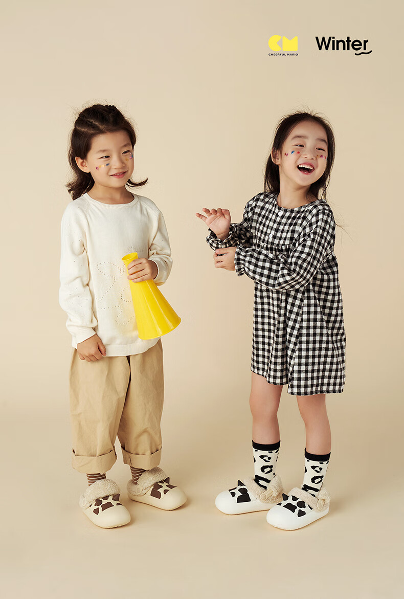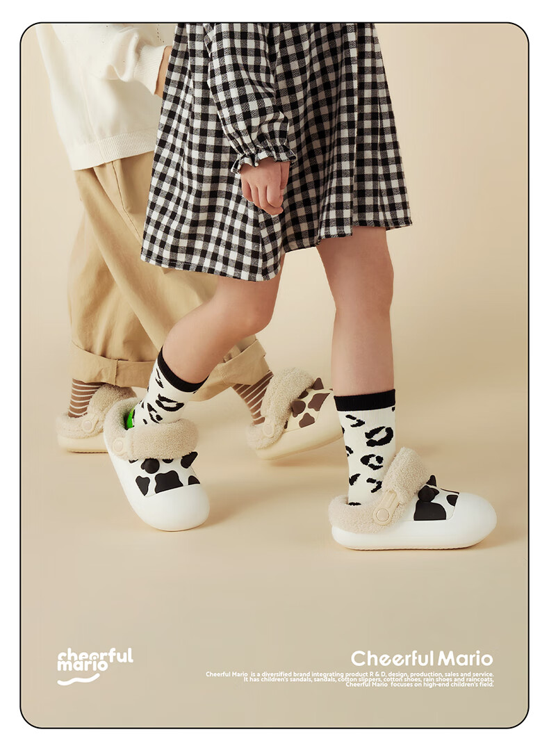 Happy Mary Cow Children's Cotton Slippers for Boys and Girls in Autumn and Winter Plus Velvet Warmth and Coldproof Home Waterproof Heel Cotton Slippers Khaki 23 Inner Length 15cm Suitable for Feet 14cm Long