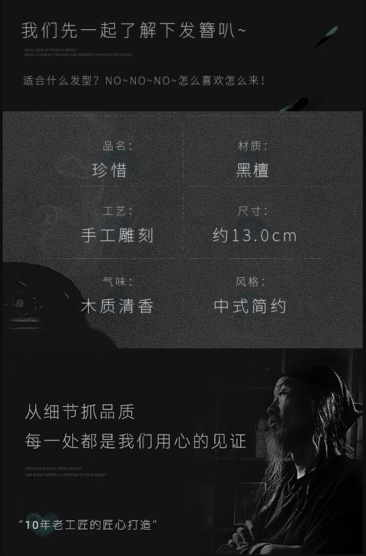 Beautiful wood hairpin, ebony peach wood ancient style hairpin, daily hairpin, Hanfu cheongsam, Chinese style hairpin, ebony precious hairpin 12cm