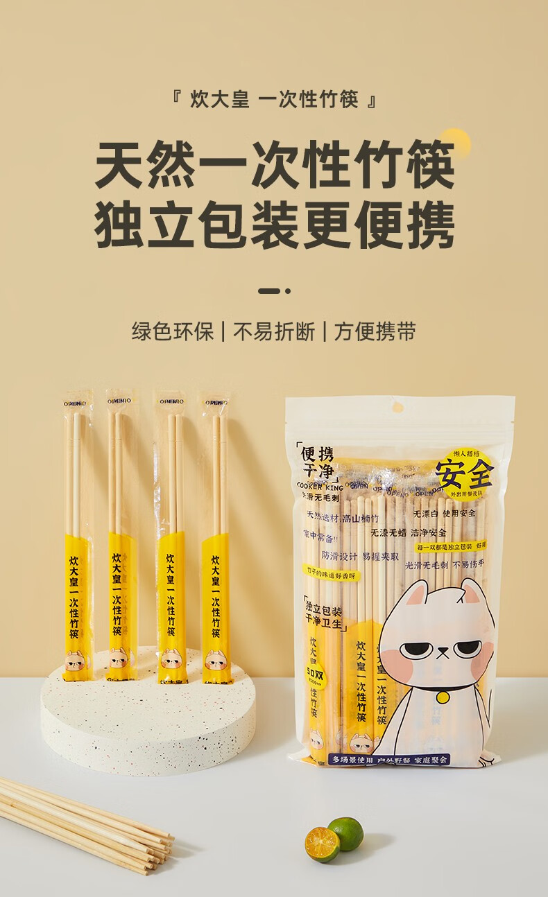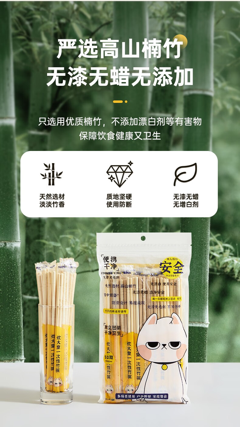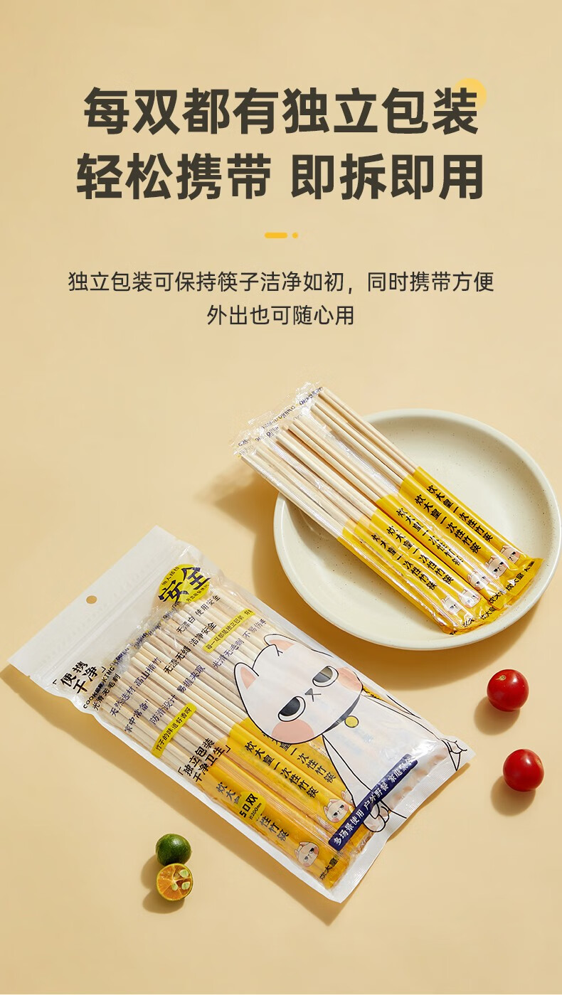 Cuidahuang disposable chopsticks individually packaged for home camping and hygienic bamboo chopsticks 100 pairs for home use