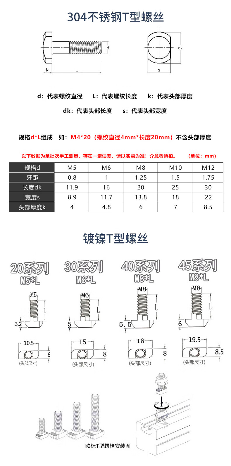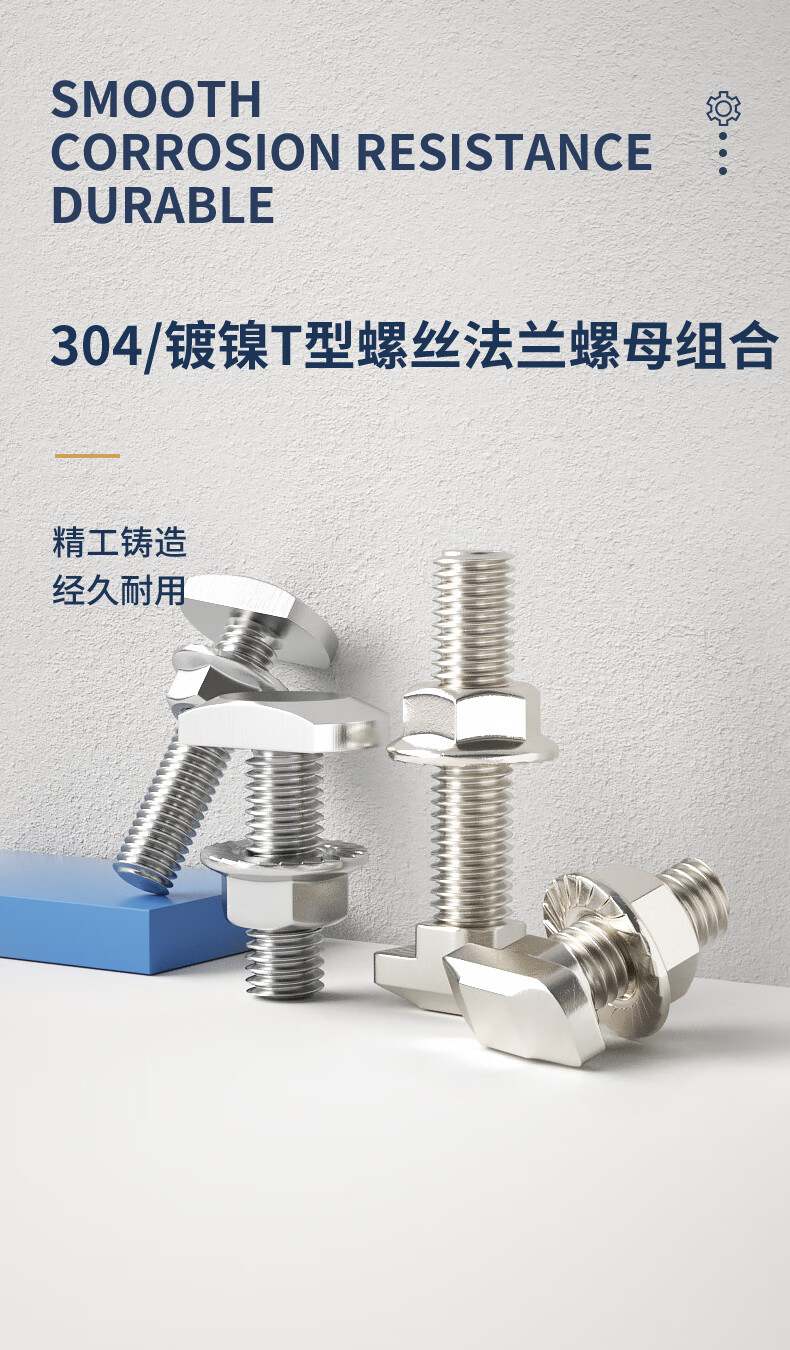 Guwanji European standard T-type screw aluminum profile T-type bolt nut flange nut 20/30/40/45 type L national standard fastener nickel plated type 40-M8x25 (20 sets)
