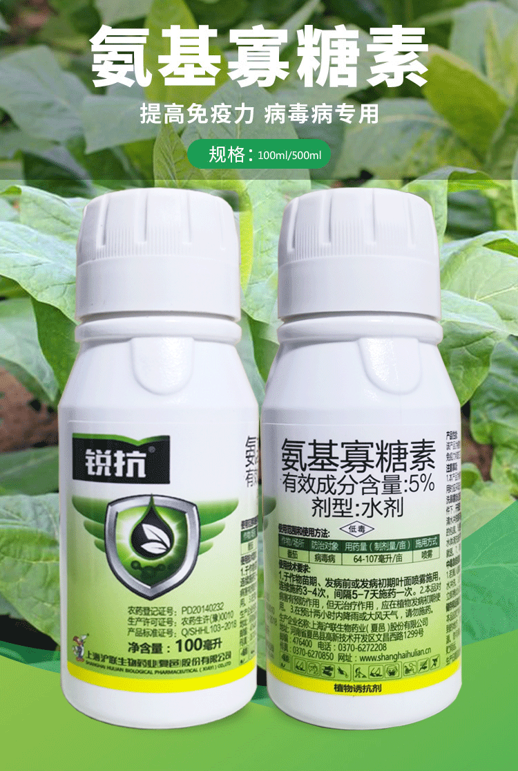 Hulian Plant Protection 5% amino oligosaccharide, special medicine for fruit trees, peppers and vegetables, yellow virus disease, plant attractant and resistance agent, pesticide and fungicide 1000ml/bottle*1 bottle