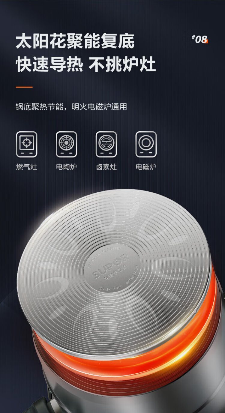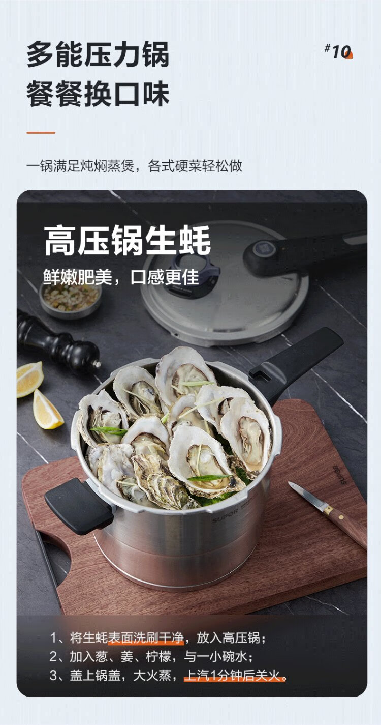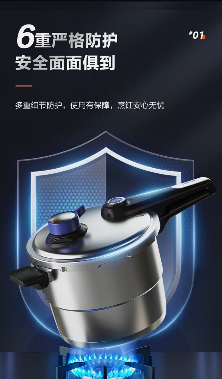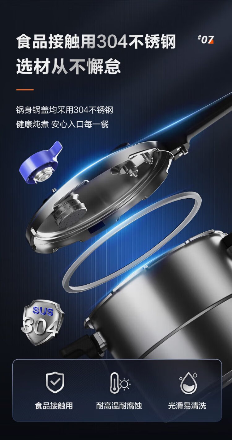 SUPOR pressure cooker 304 stainless steel pressure cooker high corrosion resistance gas stove induction cooker universal fast cooking adjustable pressure 7.5L three-speed pressure adjustment suitable for 2-6 people 24cm