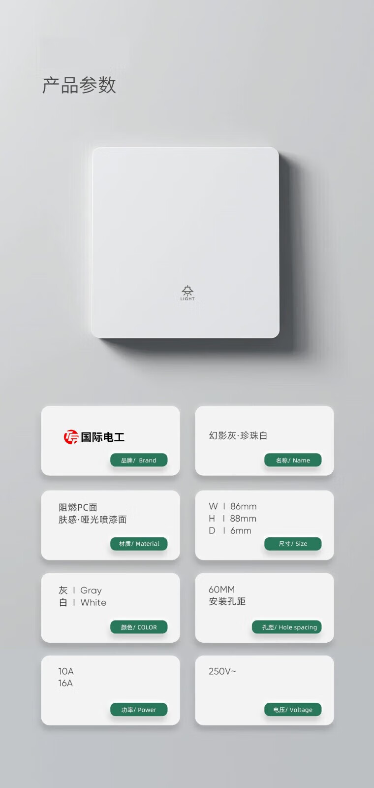 TEP International Electrician 86 concealed switch socket household large board skin-feel five-hole USB charging socket dual-control multi-control switch panel five-hole (10A) socket