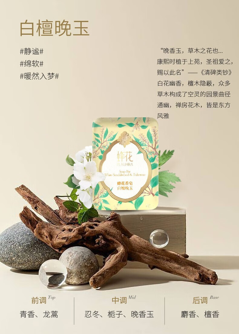 Bee flower soap essential oil fragrance white sandalwood evening jade sandalwood bath soap cleansing handmade soap cleansing soap moisturizing fragrance white sandalwood evening jade 125g 1 piece