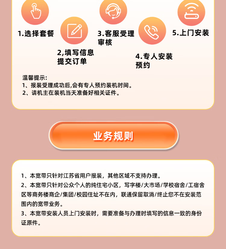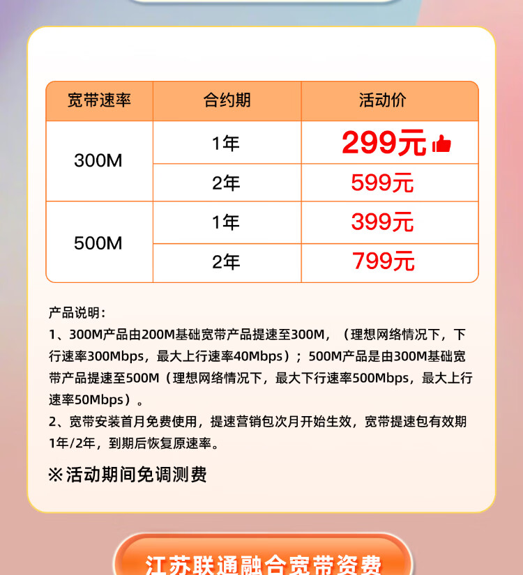 中国联通江苏南京苏州南通全省联通非电信宽带办理低资费千兆 【江苏全省联通300M包2年=599元】包光猫
