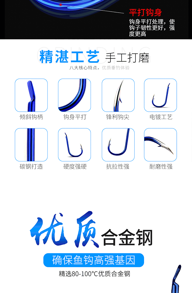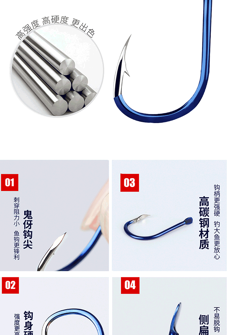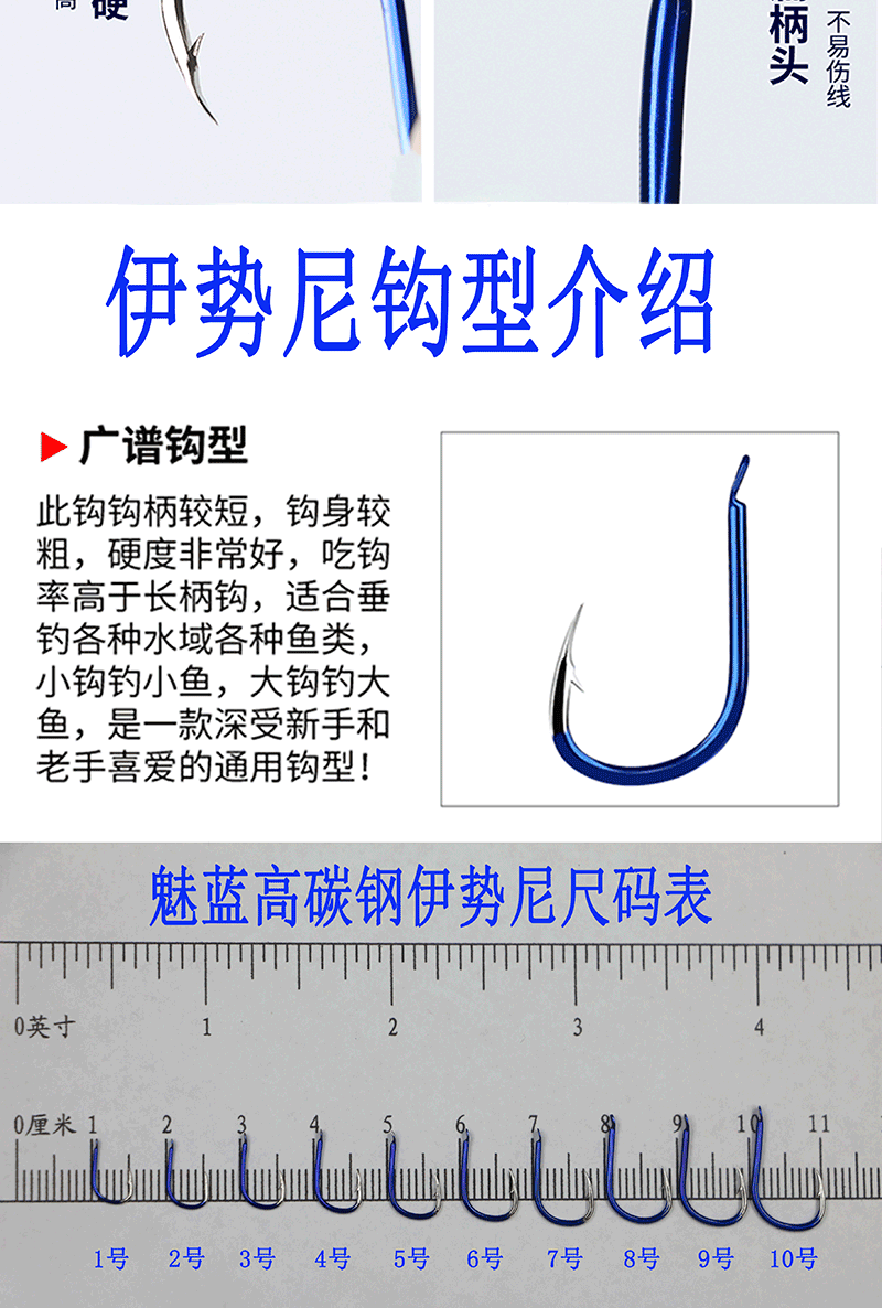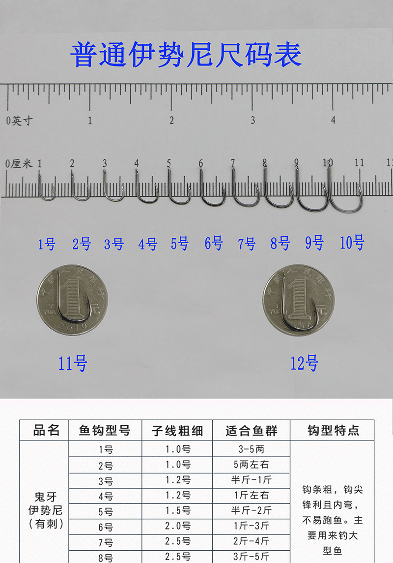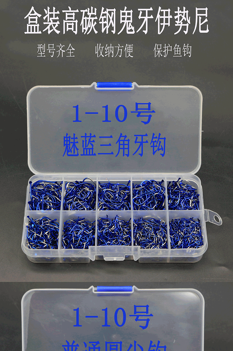 Jiaorui Iseni fish hook bulk set contains a complete set of ghost tooth fishing hooks, suitable for fishing supplies, tungsten steel black gold Iseni 300 pieces, 30 pieces each for No. 1-10