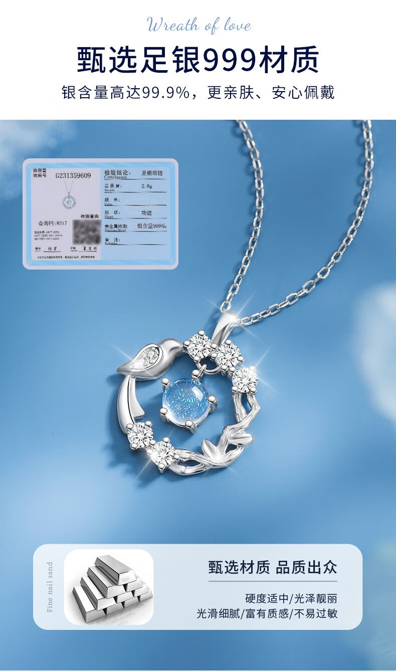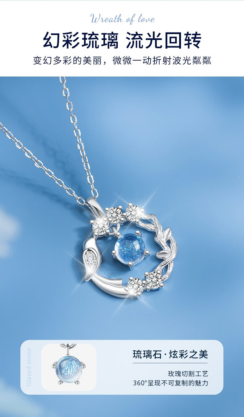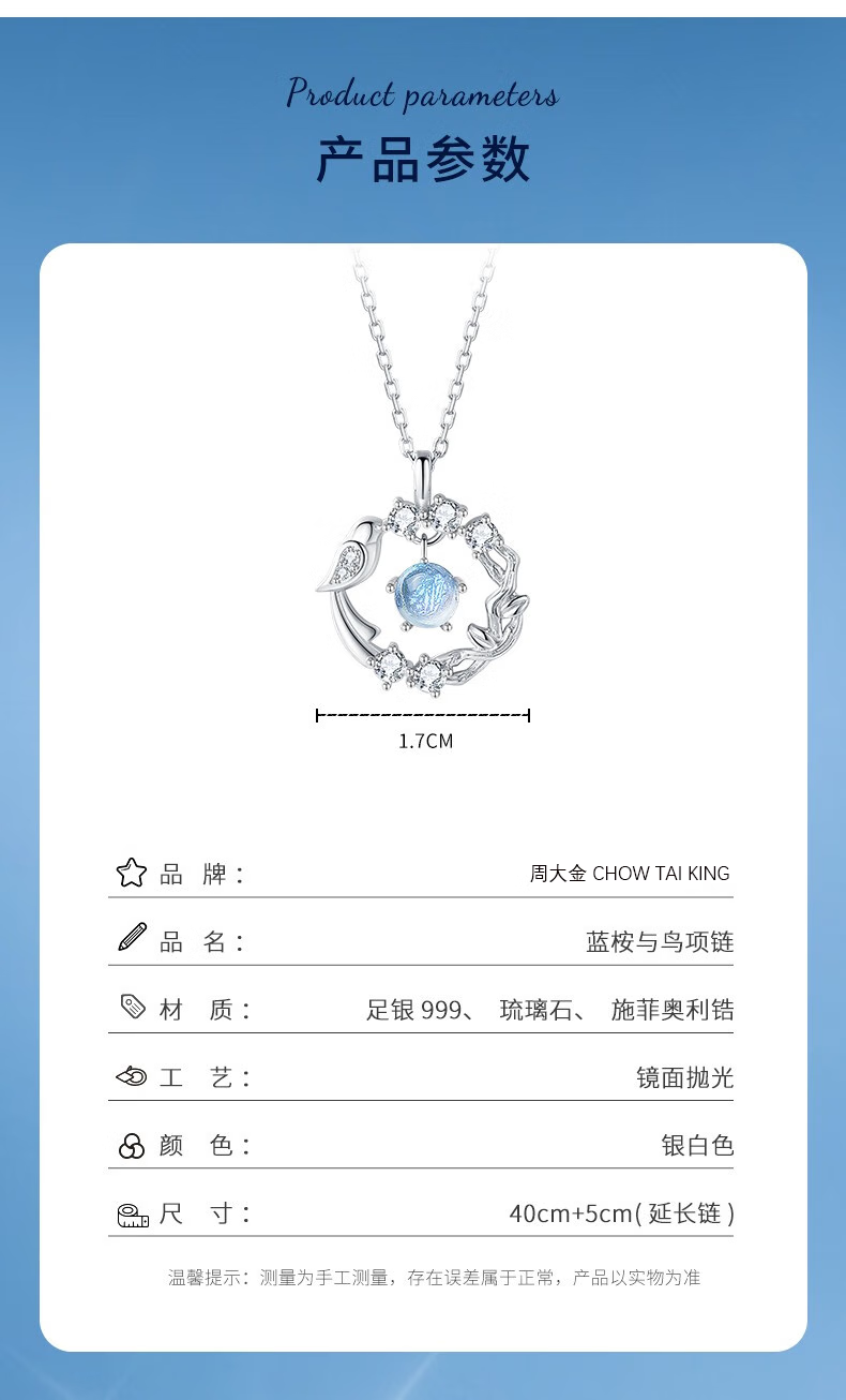 Zhou Dajin CHOW TAI KING Eucalyptus and Bird Necklace for Women 2025 New High-end Pendant Valentine's Day Birthday Gift for Girlfriend and Wife Eucalyptus and Bird Necklace Eternal Flower Gift Box