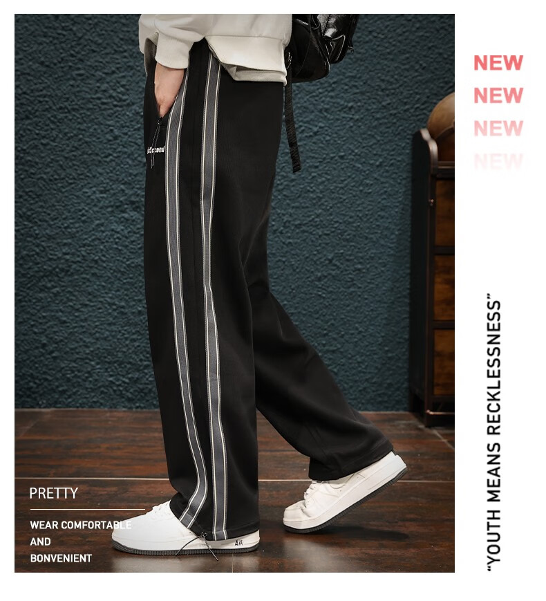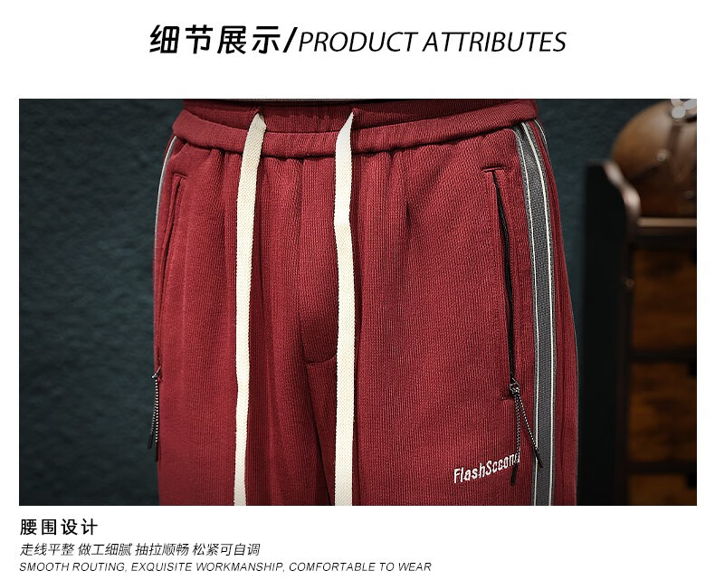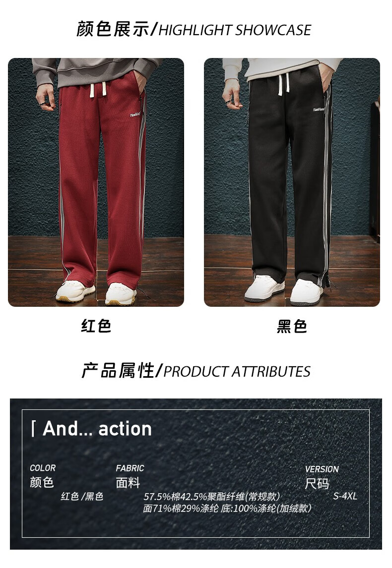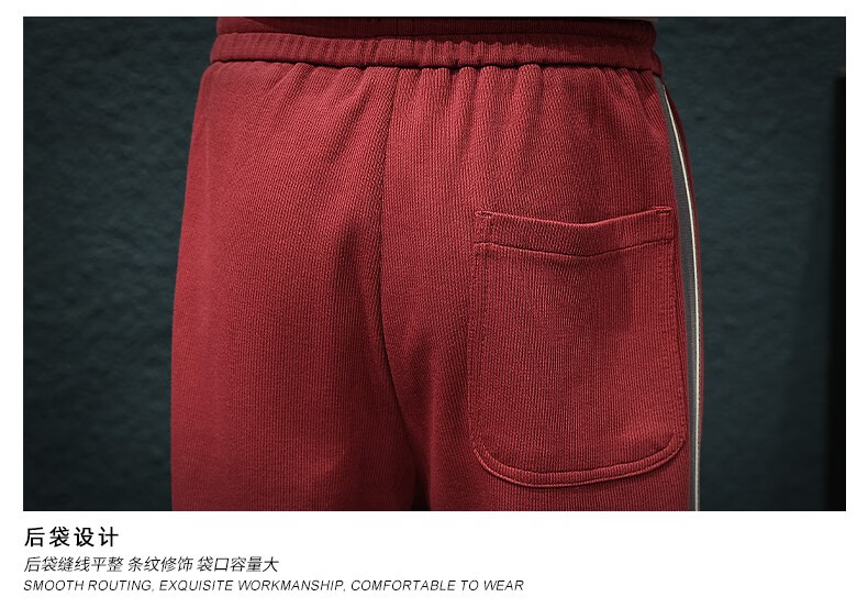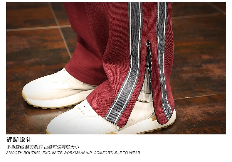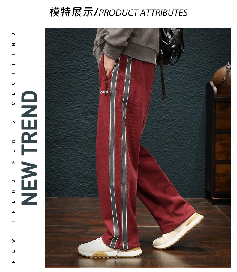 Jingulai striped straight-leg sweatpants for men in spring and autumn, loose zipper pockets, large size fat sweatpants, men's casual pants, red, thickened, velvet, 3XL, weight 180-200Jin Jin is equal to 0.5 kg