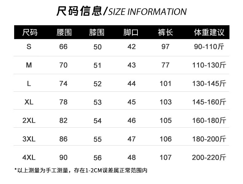 Outseam (cm) 99 cm 101.5 cm 104 cm 106.5 cm 109 cm