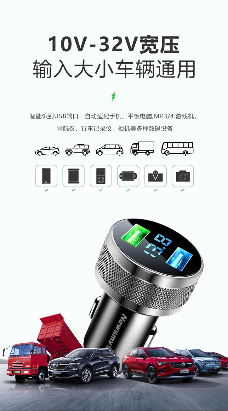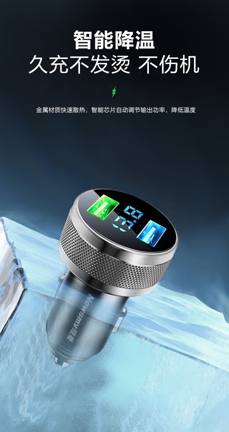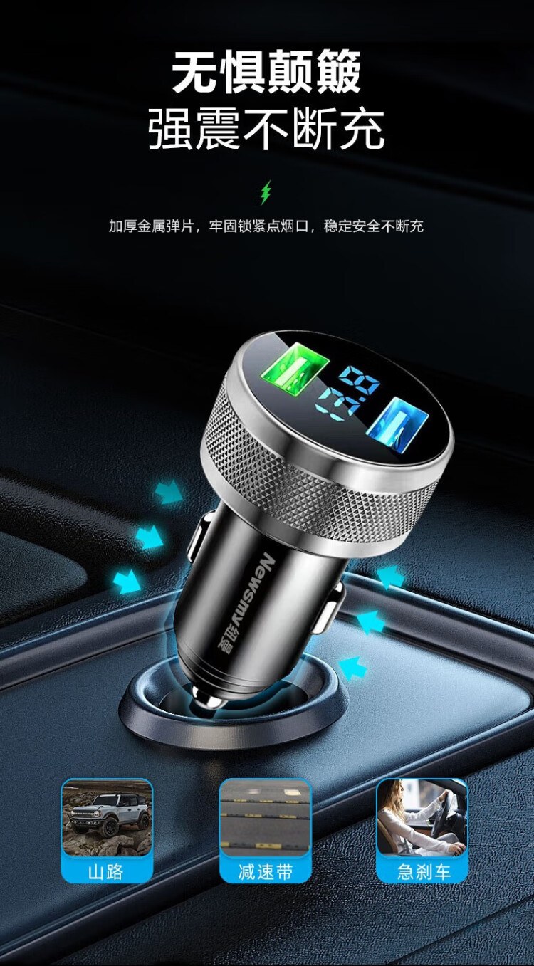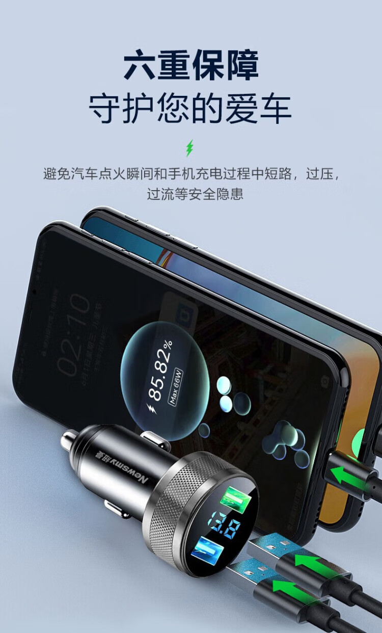 Newman car charger super fast charging cigarette lighter conversion plug one-to-two suitable for Huawei 66w car charger Apple fast charging supports 40W super fast charging + 15W
