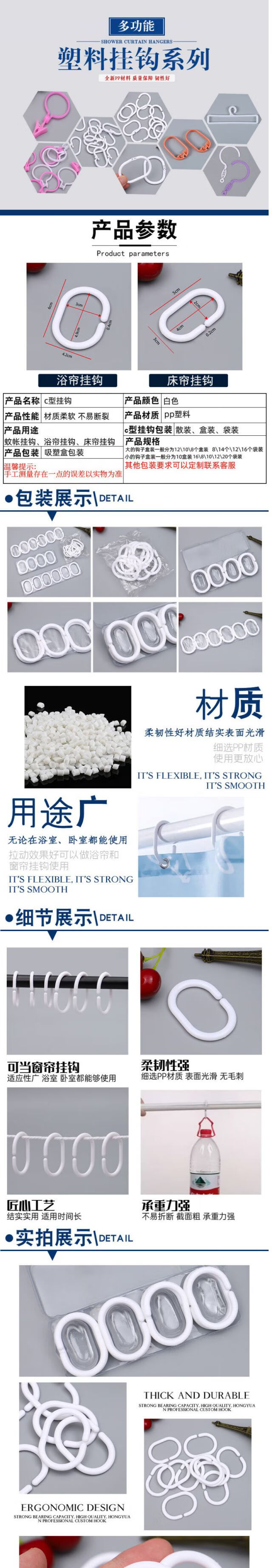 Runhuanian hook curtain shower curtain hanging ring C-shaped plastic hanging ring round thickened bold hanging ring clothes and hat hooks wholesale white 12 boxes 3x4