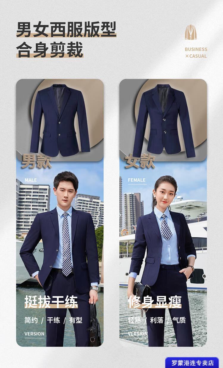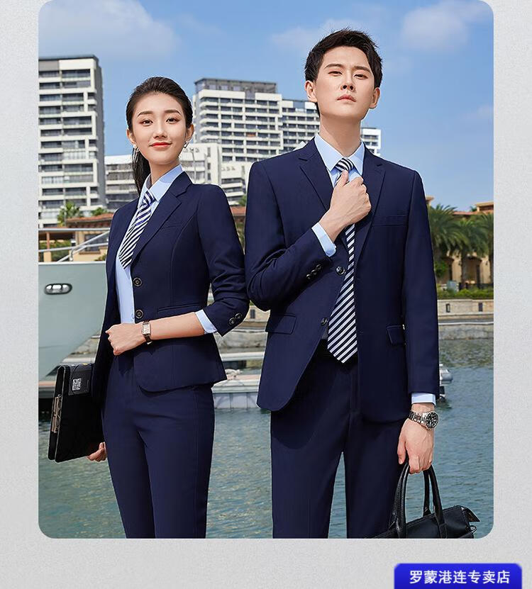 ROMON professional suit suit for men and women, business formal dress, groomsmen suit, bank 4S store interview work clothes, male, sapphire blue suit + pants XL