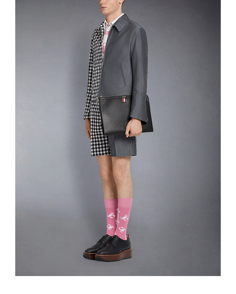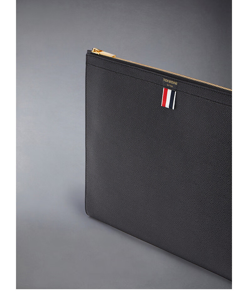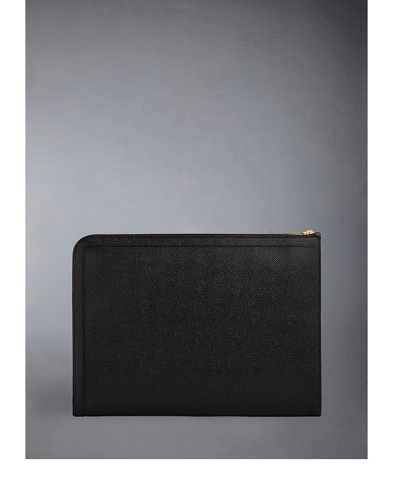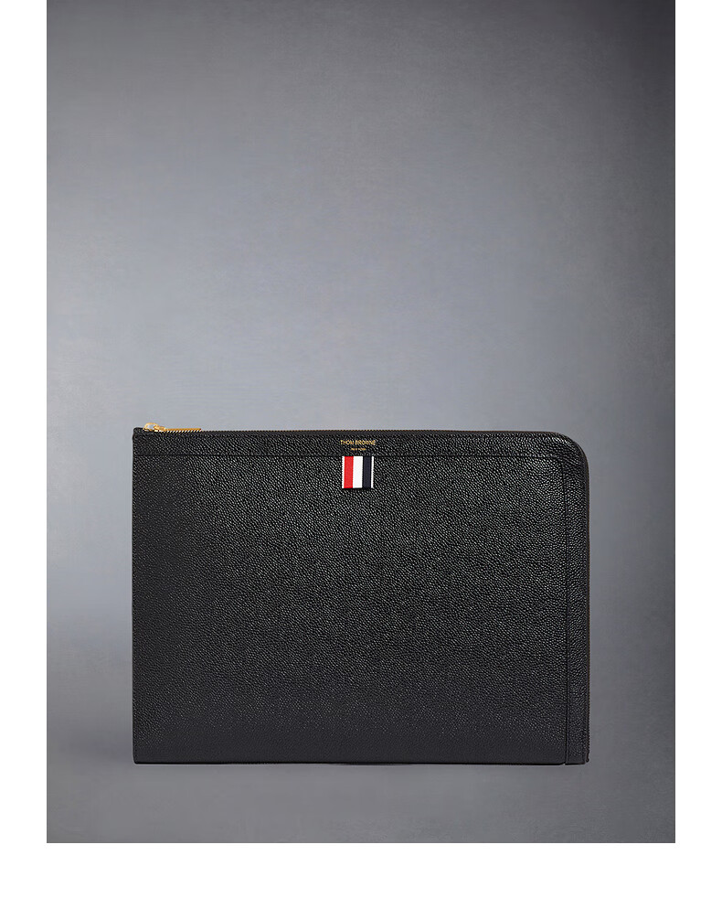THOM BROWNE TB 50% off black half-zip pebbled leather document bag black size 00