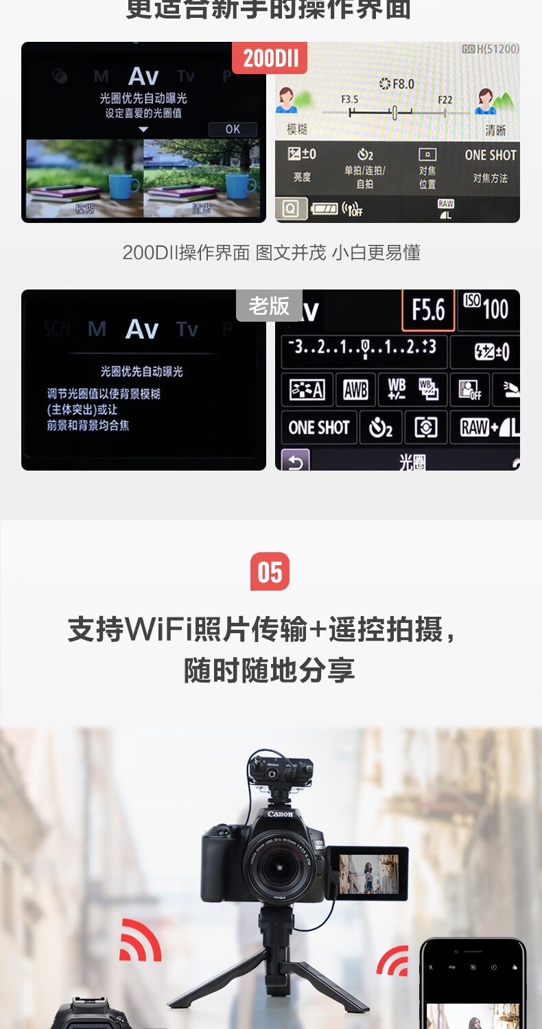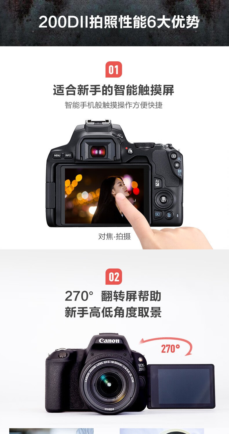 Canon Canon EOS 200D second generation/2 SLR camera entry-level student digital high-definition travel 4K video New Hong Kong version Canon 200D second generation black stand-alone camera + 18-55 STM lens