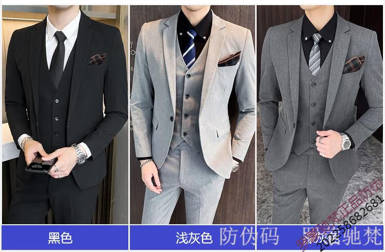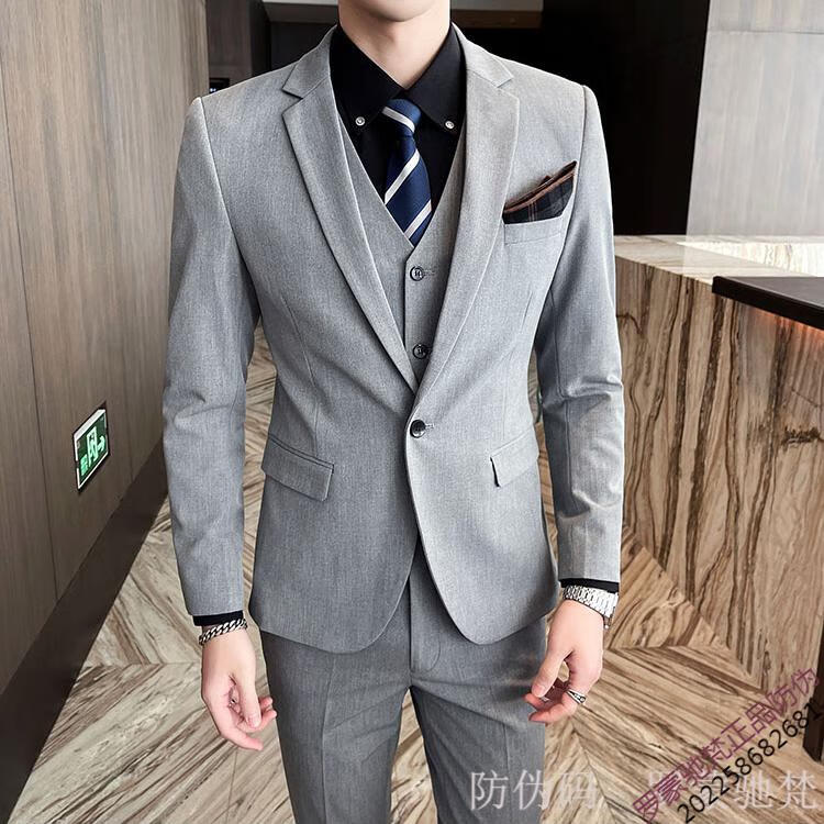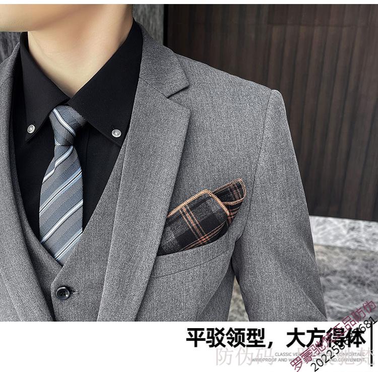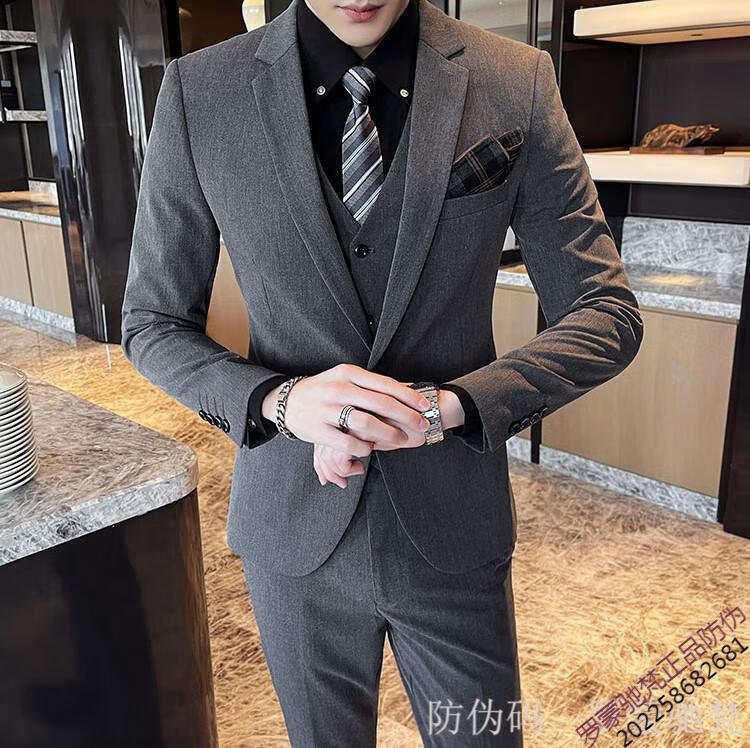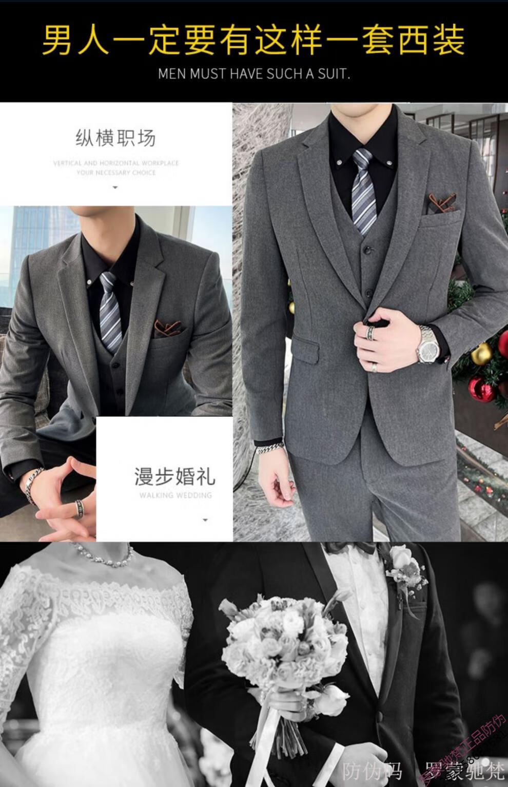 ROMON Men's Suit Suit Men's Business Casual Slim Korean Formal Small Suit Young Groom Wedding Dress New Product Dark Gray Suit+Pants+Vest Three-piece Set+