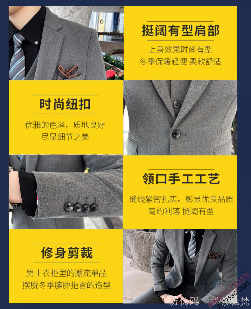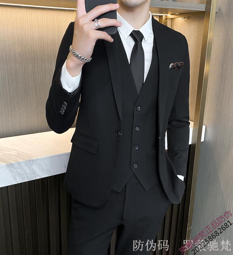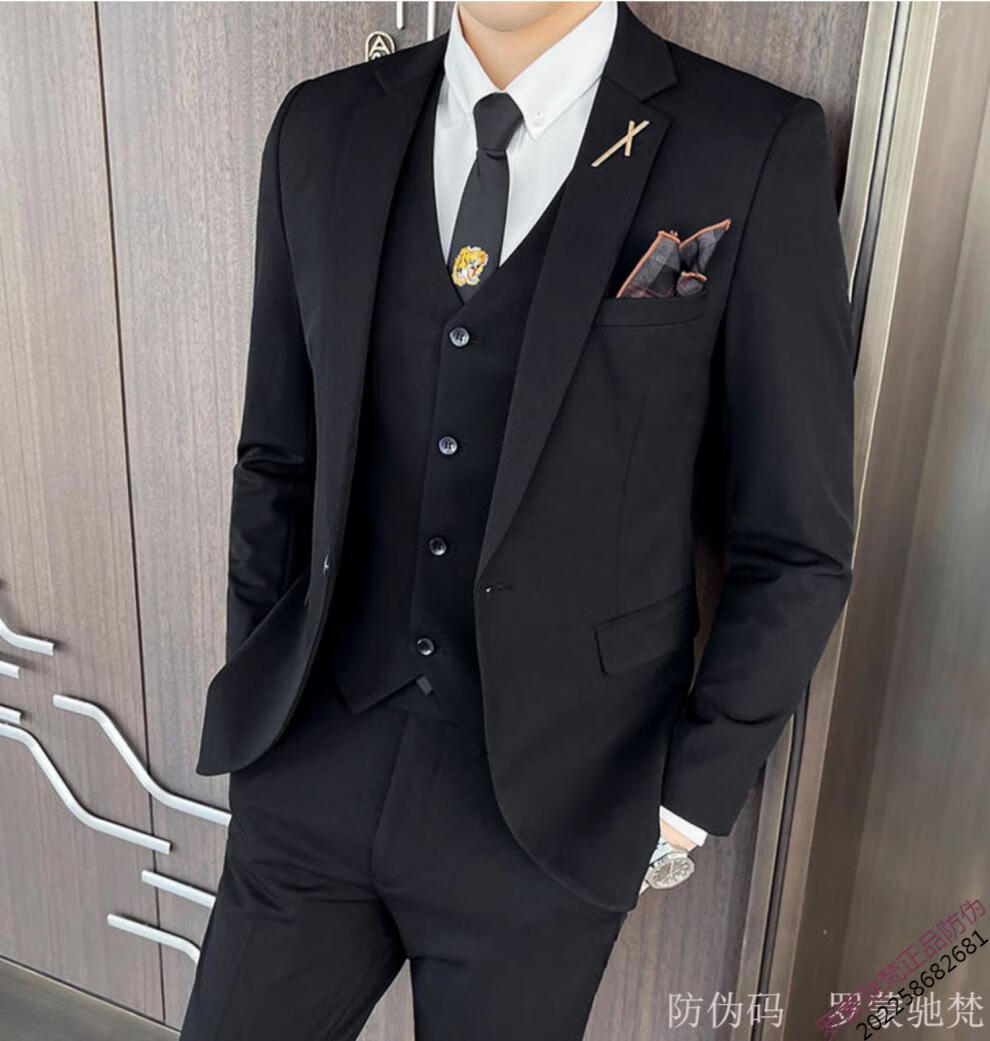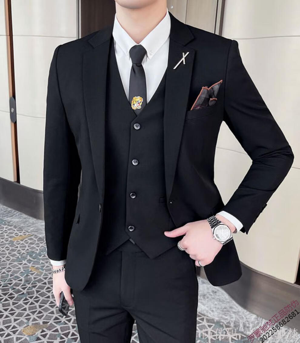 ROMON Men's Suit Suit Men's Business Casual Slim Korean Formal Small Suit Young Groom Wedding Dress New Product Dark Gray Suit+Pants+Vest Three-piece Set+