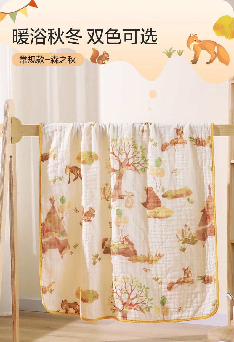 Cotton era pure cotton gauze bath towel, warm, quick-drying, soft and skin-friendly, 8-layer gauze baby autumn and winter blanket, autumn and winter style, Shishi Ruyi 115x115cm 1 piece