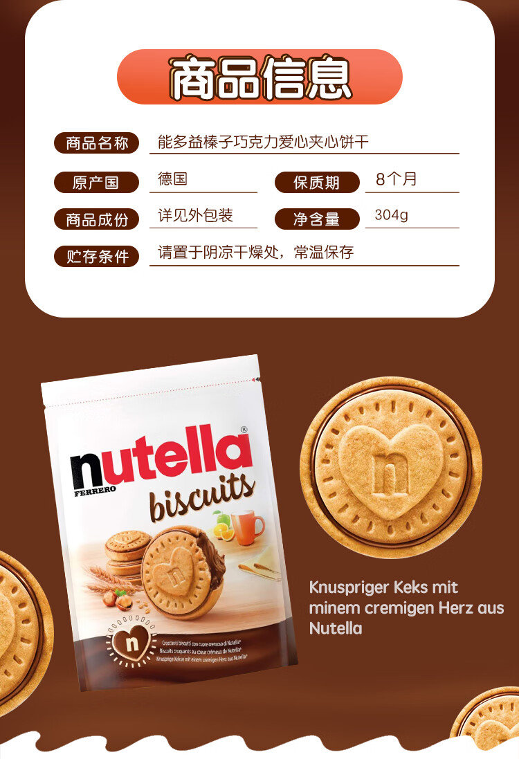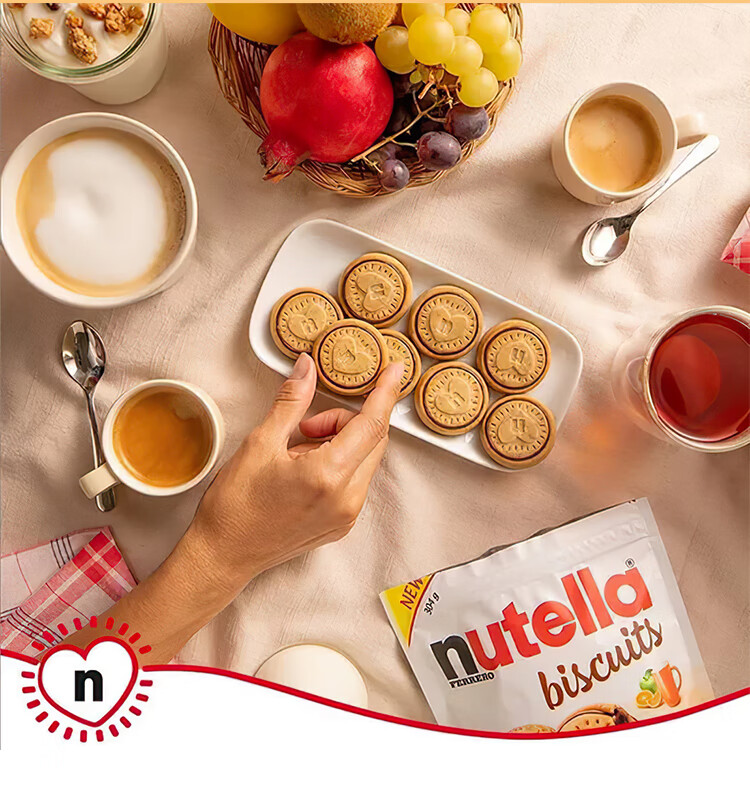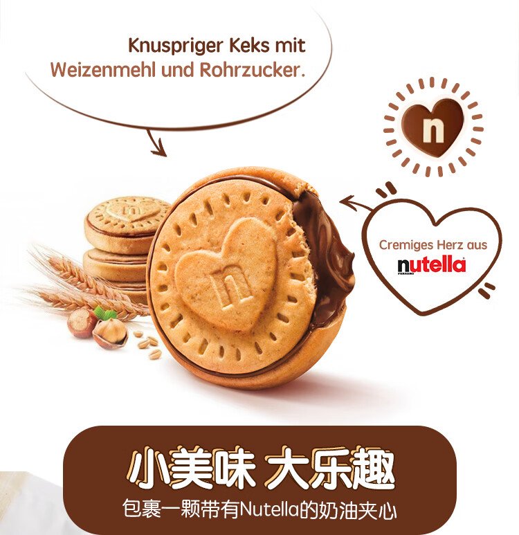 Ferrero Nutella Nutella Chocolate Spread Hazelnut Sandwich Biscuits Imported Snacks Office Afternoon Tea 41.4g*5 Bags (Portable Stick Pack)
