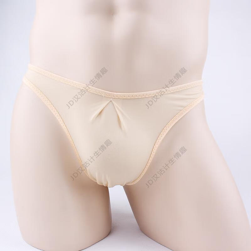 Ye Zimei men's ice silk underwear sexy transparent thong men's low-waist briefs men's temptation U-convex breathable sexy underwear one size flesh color