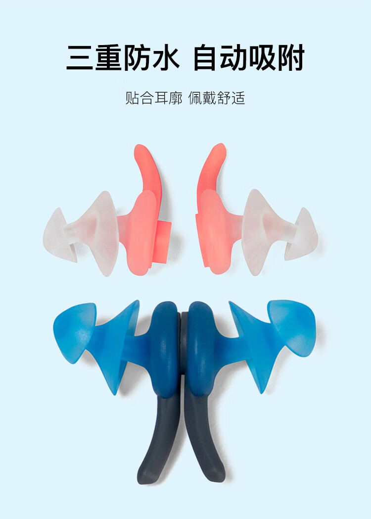 Speedo professional swimming earplugs for adults and children to prevent water ingress, special bathing waterproof artifact diving nose clip set, blue, soft and comfortable, anti-water ingress