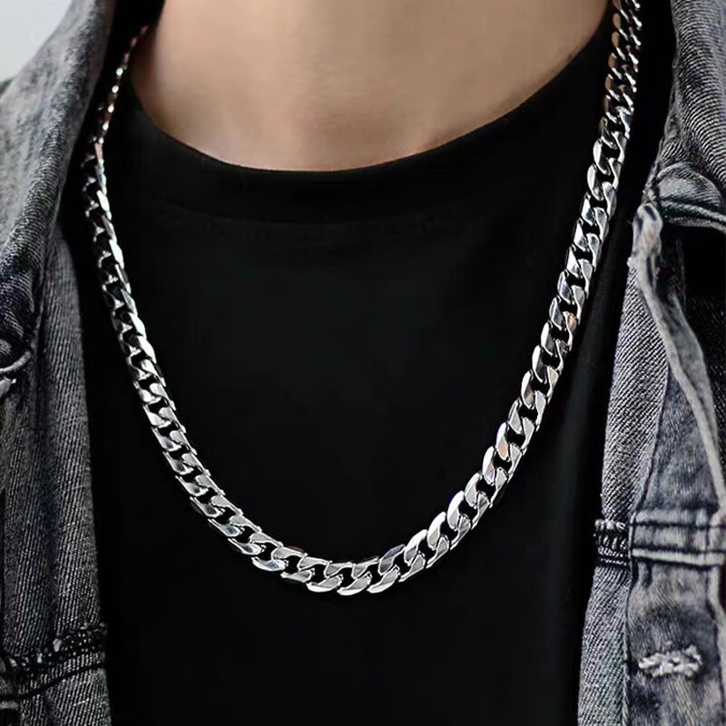 Pei Nanwei Cuban chain necklace men's trendy hiphop high street titanium steel non-fading thick iron chain European and American hip hop free chain titanium steel Cuban necklace 60cm