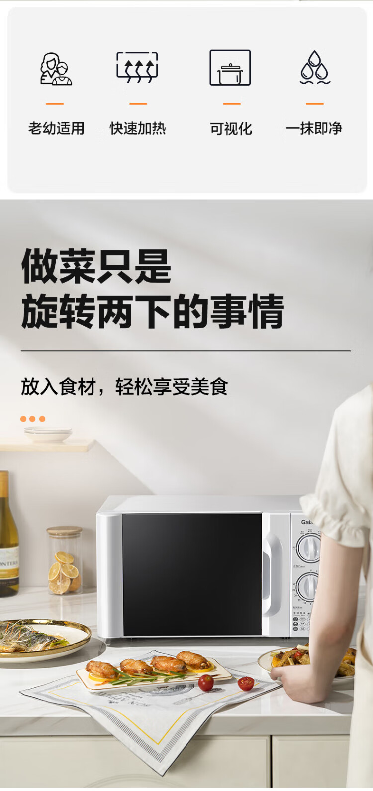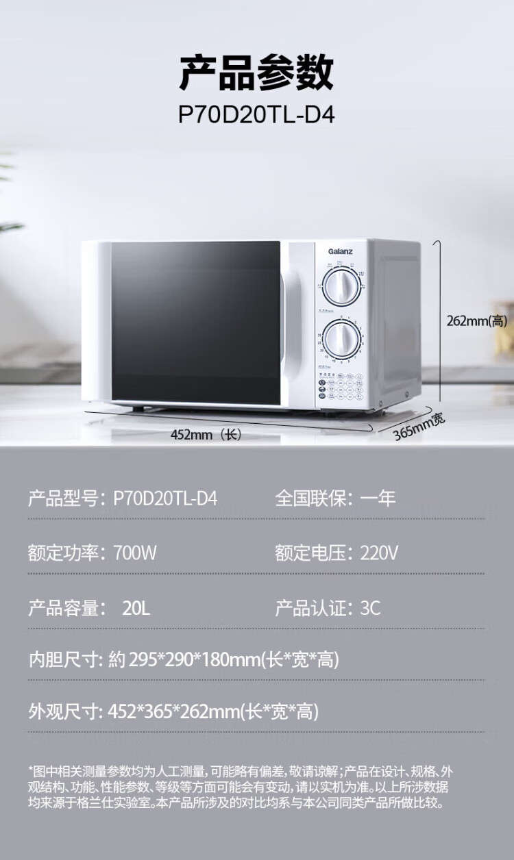 Galanz Microwave Oven Household 20L Six-speed Firepower Knob Easy to Clean Small Mini Turntable Heating Microwave Mechanical Knob