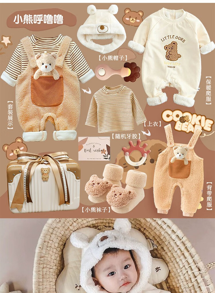 Newborn gift box, baby clothes gift box, full moon gift, clothes suit, male and female baby gift for 100 days after birth, collect screenshots and send a pair of socks to customer service, 0-4 months